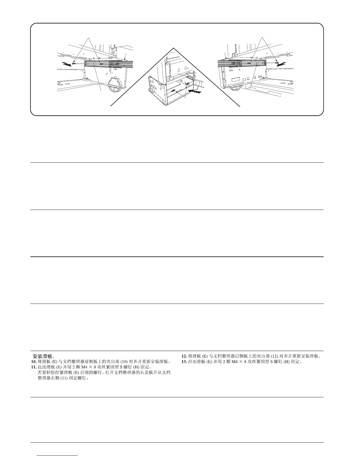 12.Align slider (E) with projection (12) on the back-side plate of the docu-