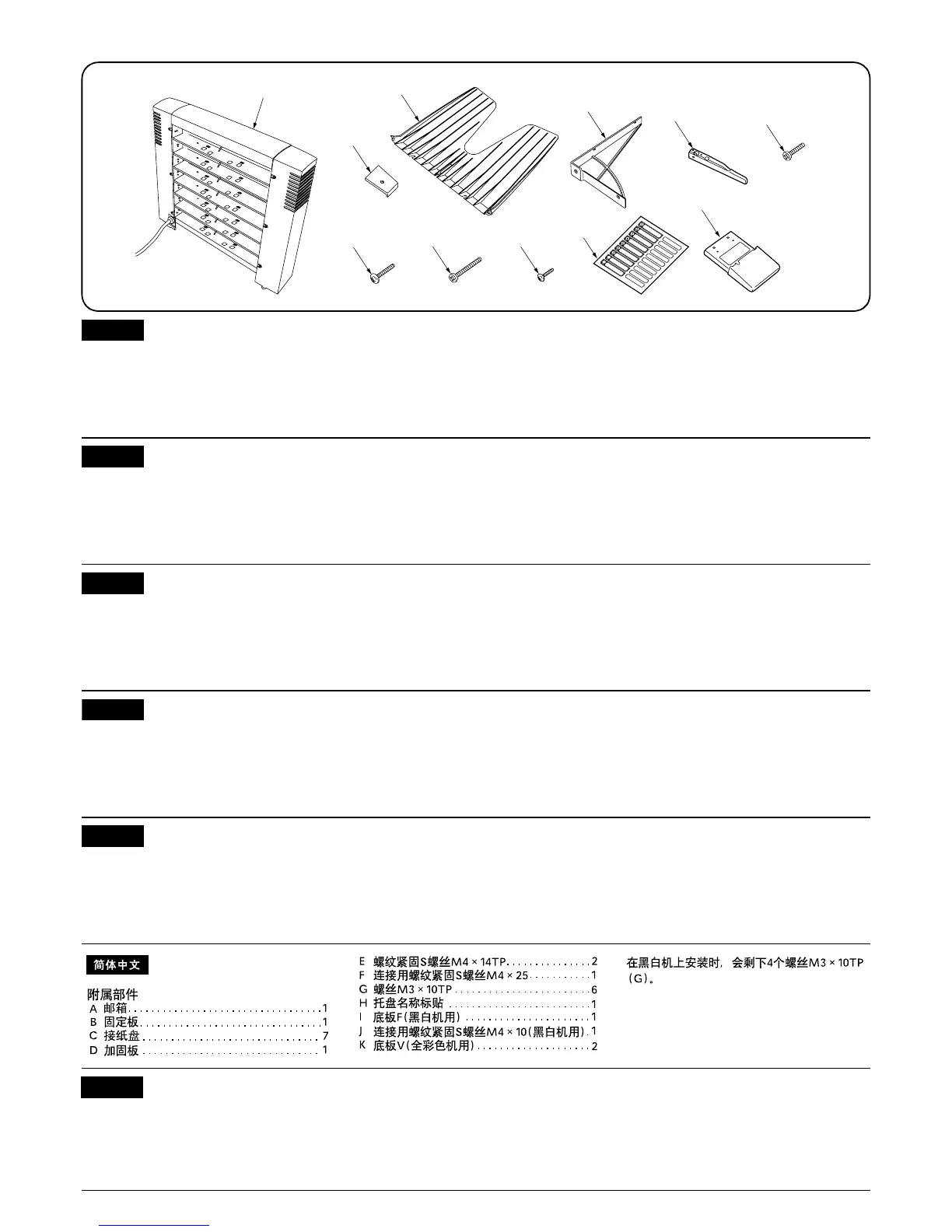 モノクロ機に取り付ける場合は、(G)が4本余り