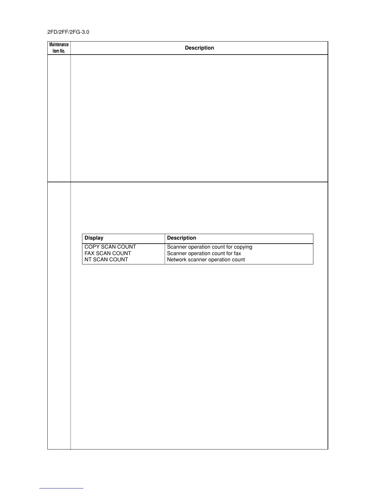 FAX SCAN COUNT Scanner operation count for fax