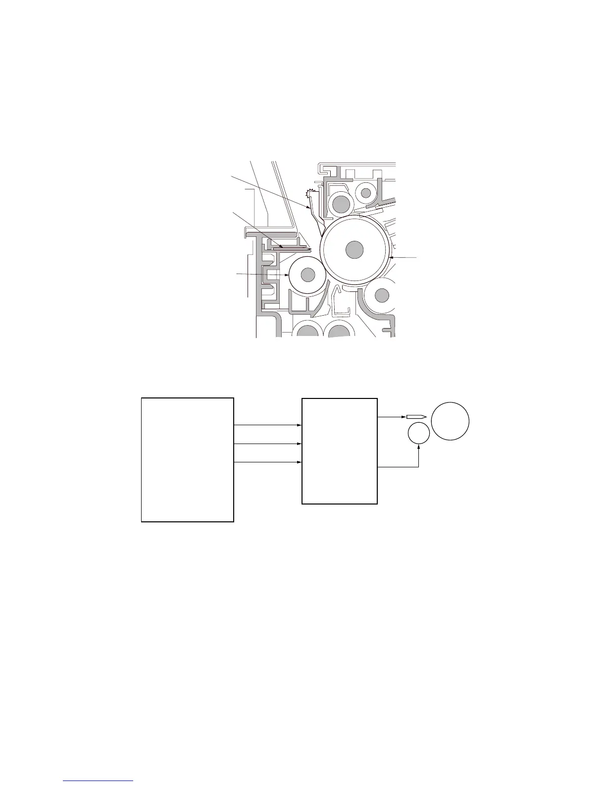 The transfer and separation section consists mainly of the transfer roller, separation electrode and drum separation