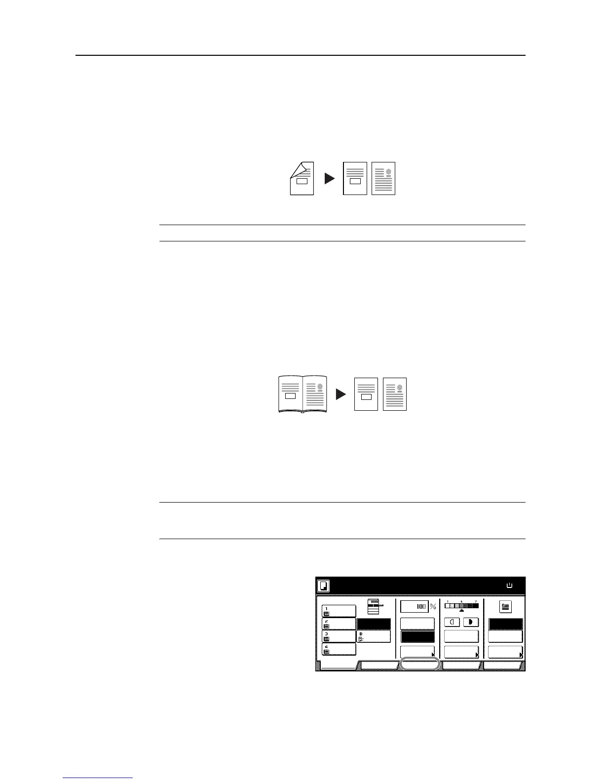 Use Split mode to create single-sided copies from two-sided originals or originals with facing pages
