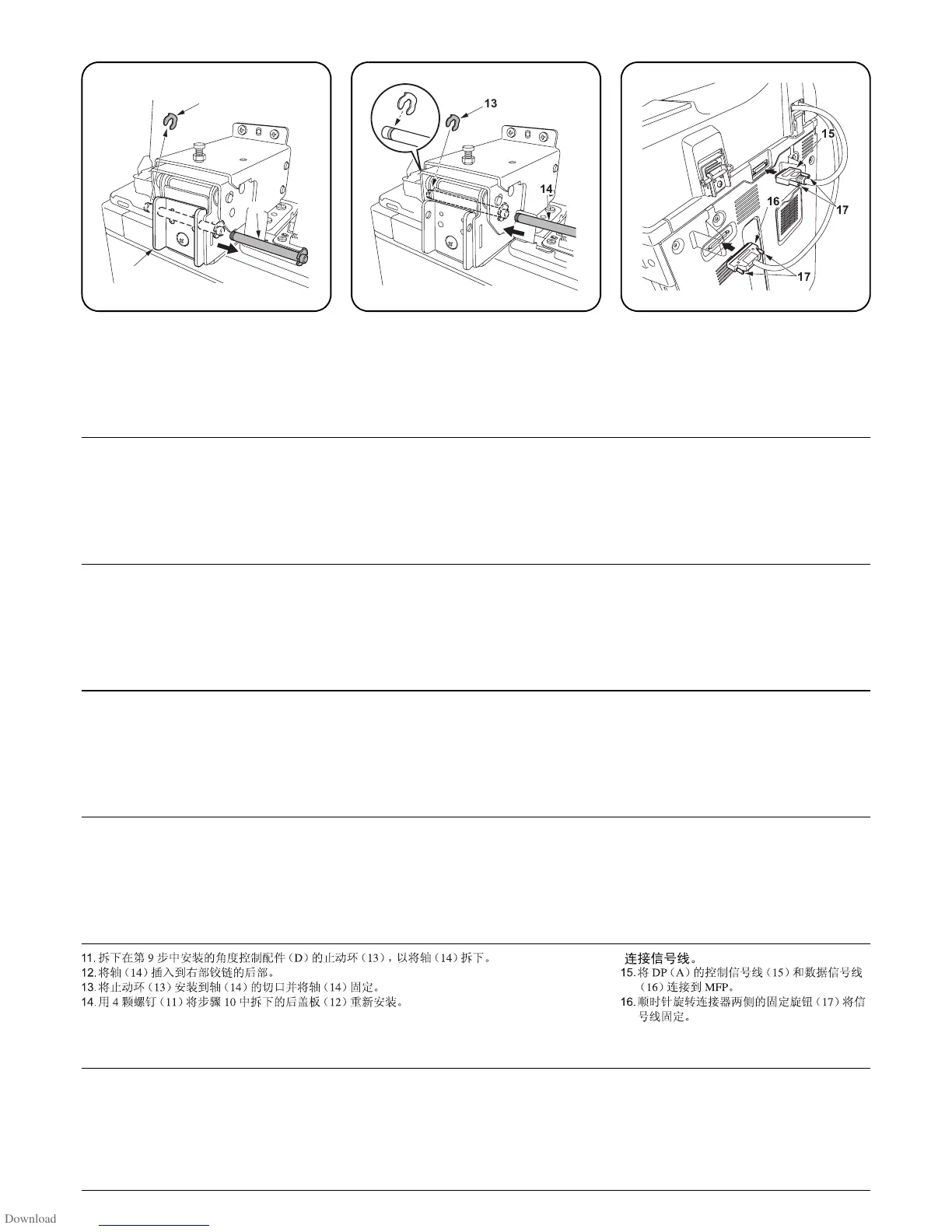11.手順 12 で取り付けた角度規制金具 (D) のストップリング (13)1 個を外し、シャフト (14) を取り