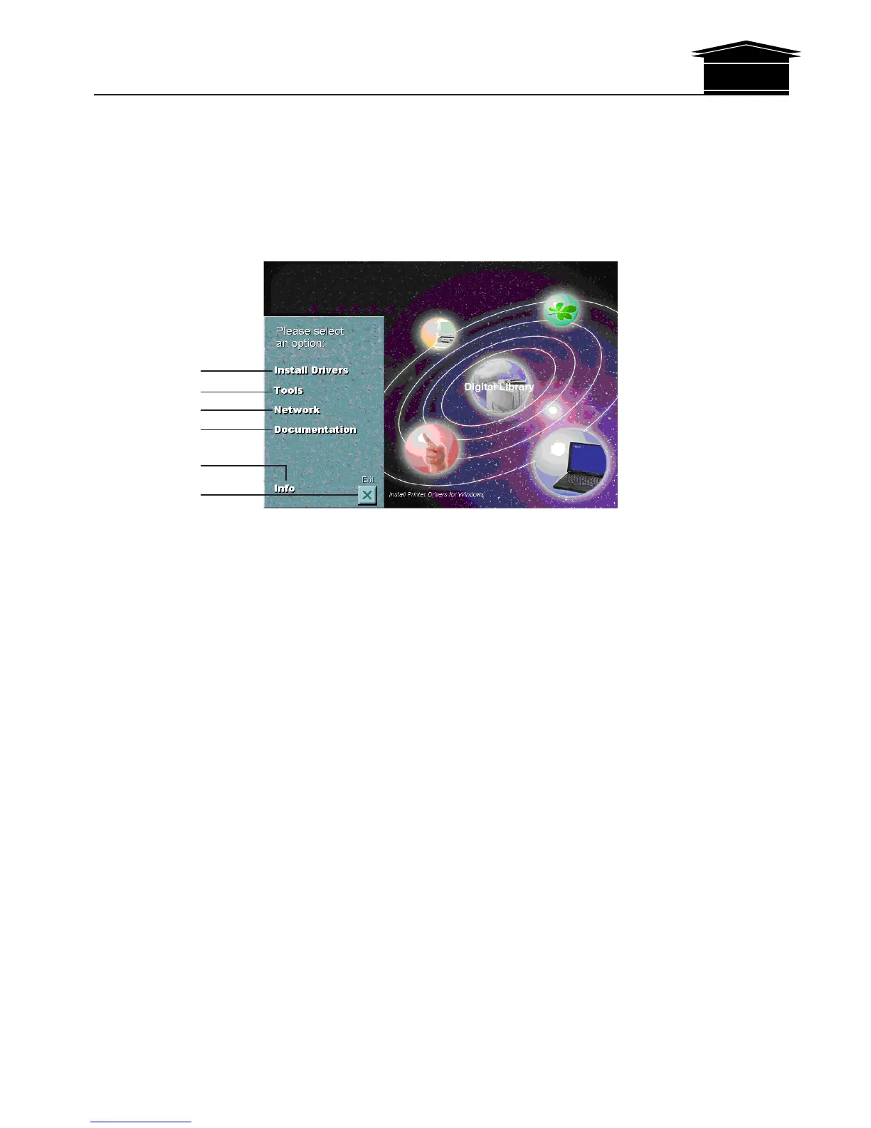 This section explains the screen that appears when the CD-ROM supplied with the printing system (J) is inserted into the CD-ROM drive.