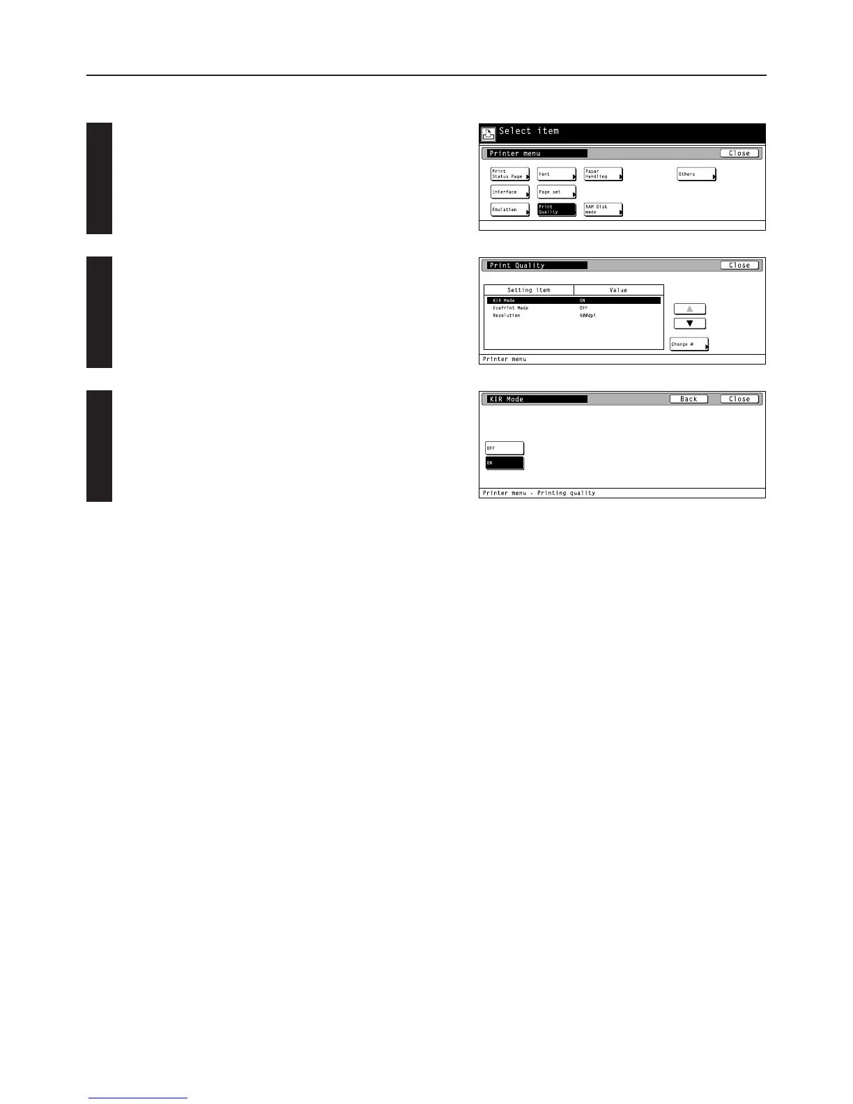 Touch the “Print Quality” key. The [Print Quality] screen will appear.
