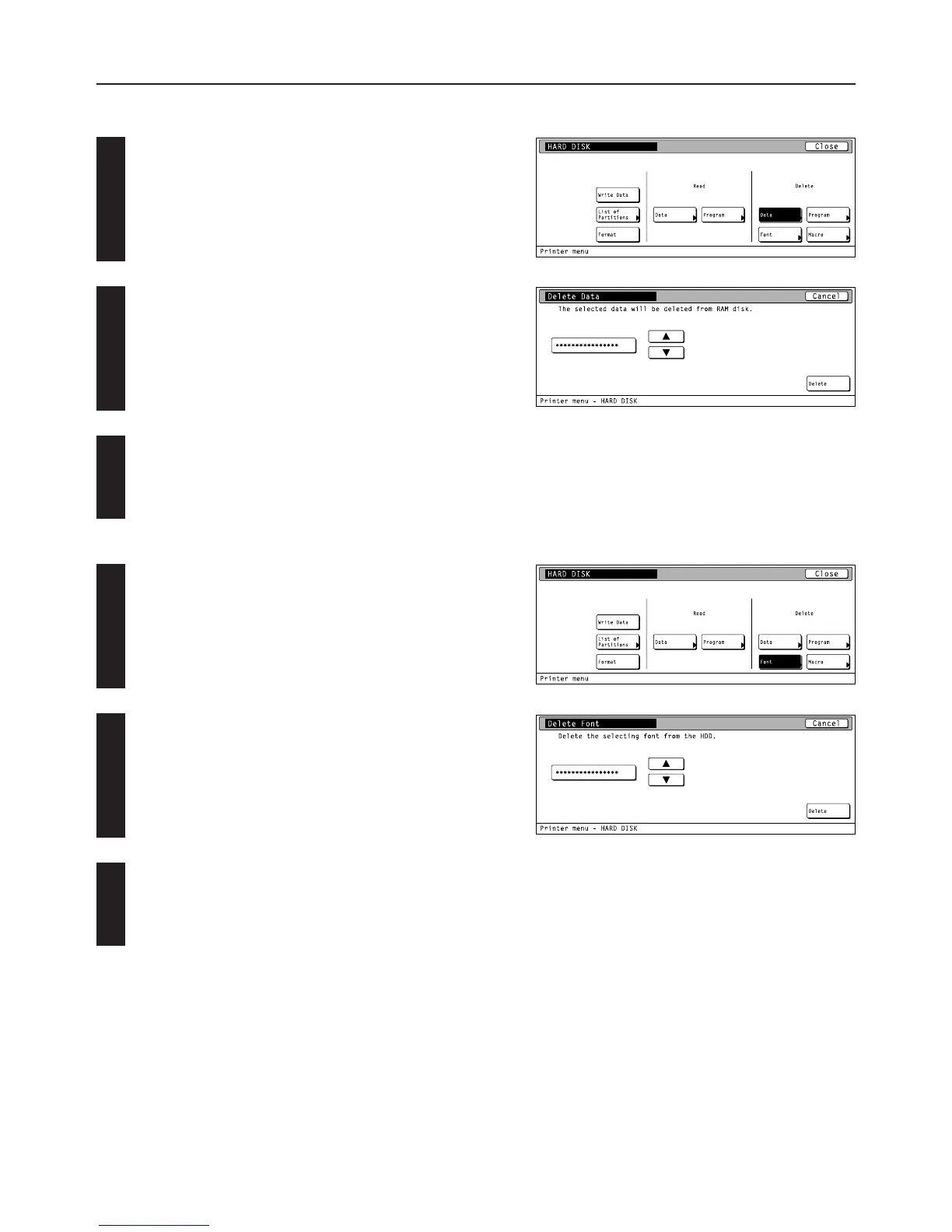 Use the “▲” and “▼” cursor keys to select the font data that you