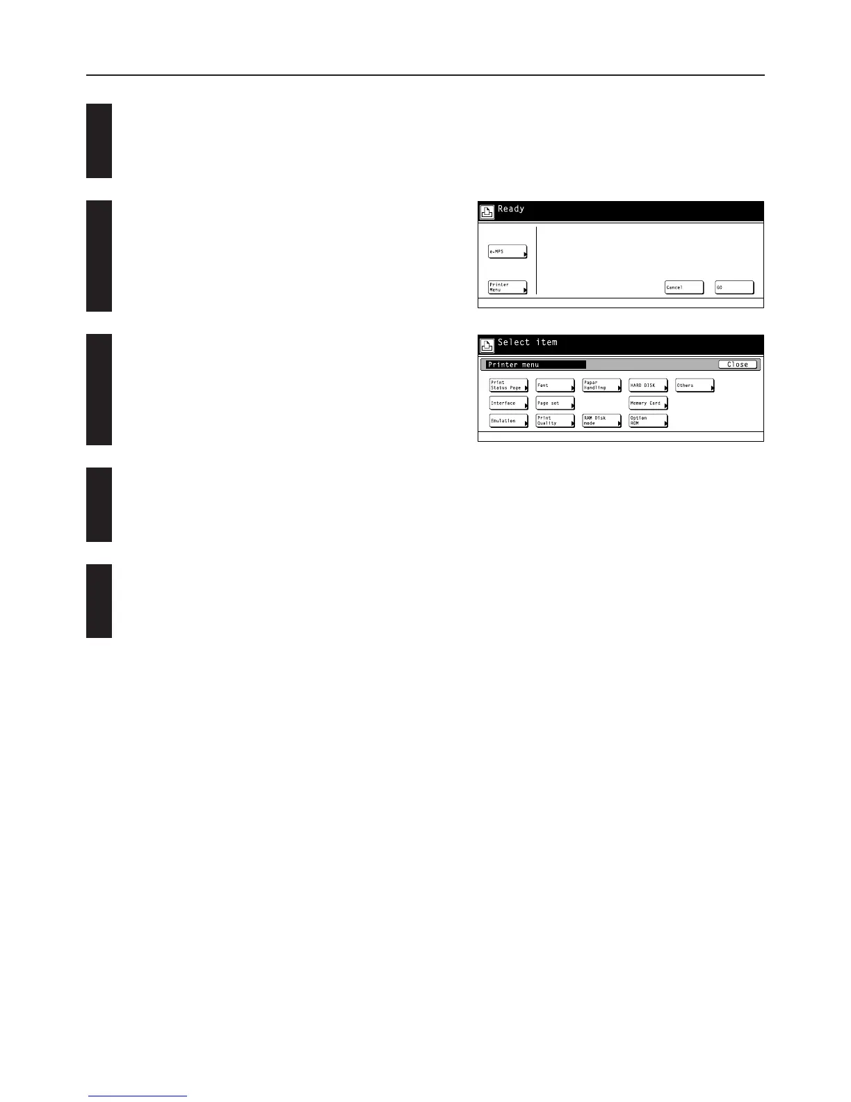 Touch the “Printer Menu” or the “e-MPS” key. The [Printer Menu]