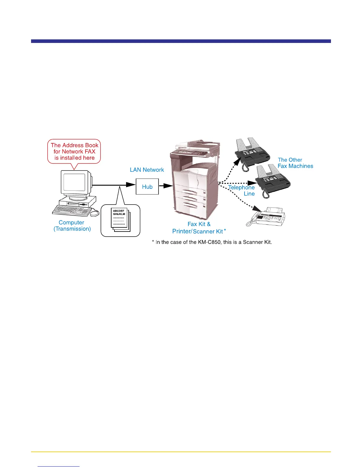 It is necessary to have Address Book for Network FAX installed in each computer which will be used for fax transmission in