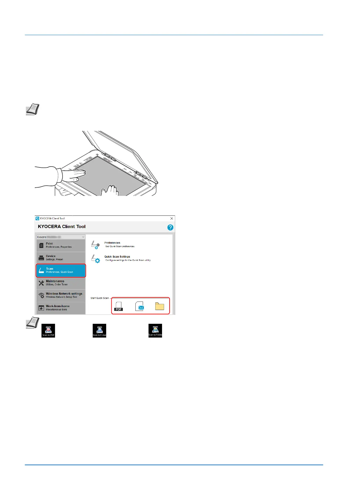 Note Scanning also begins by clicking Scan to PDF, Scan to Email or Scan to Folder icon on the desktop.