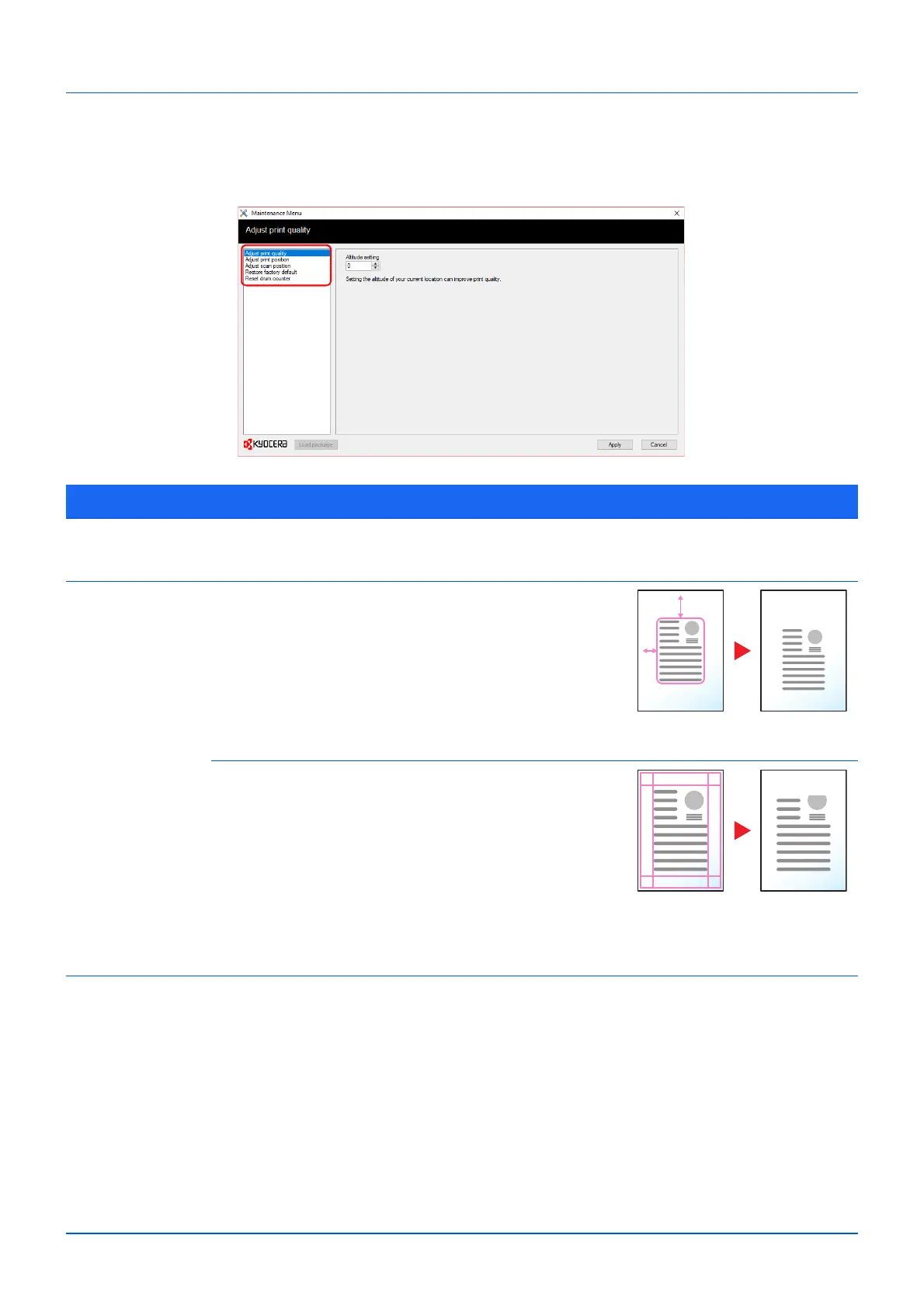 The Maintenance Menu that the user can adjust from KYOCERA Client Tool is described below. In addition, also refer to