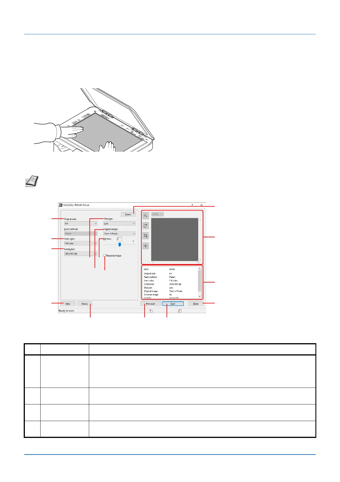 The procedure for scanning using the TWAIN driver is explained as an example. The WIA driver is used in the same way.