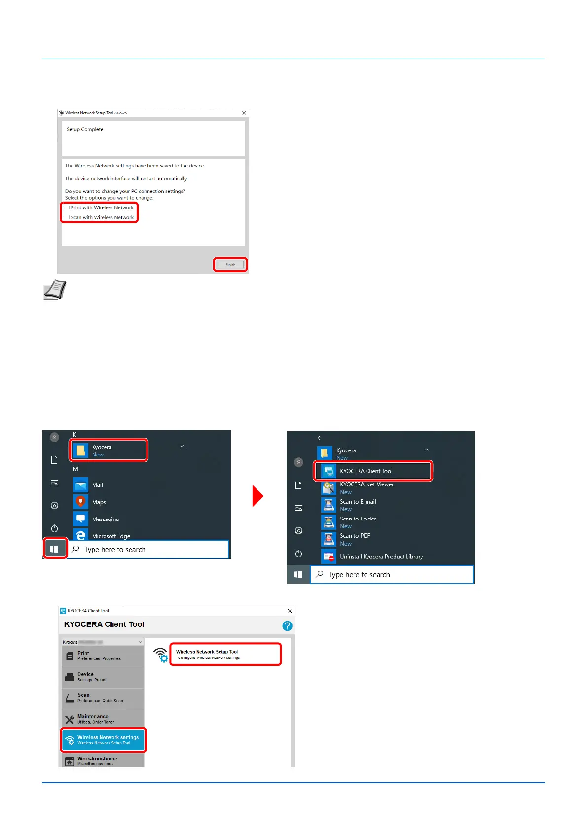 Click Start button on the Windows > Kyocera > KYOCERA Client Tool.