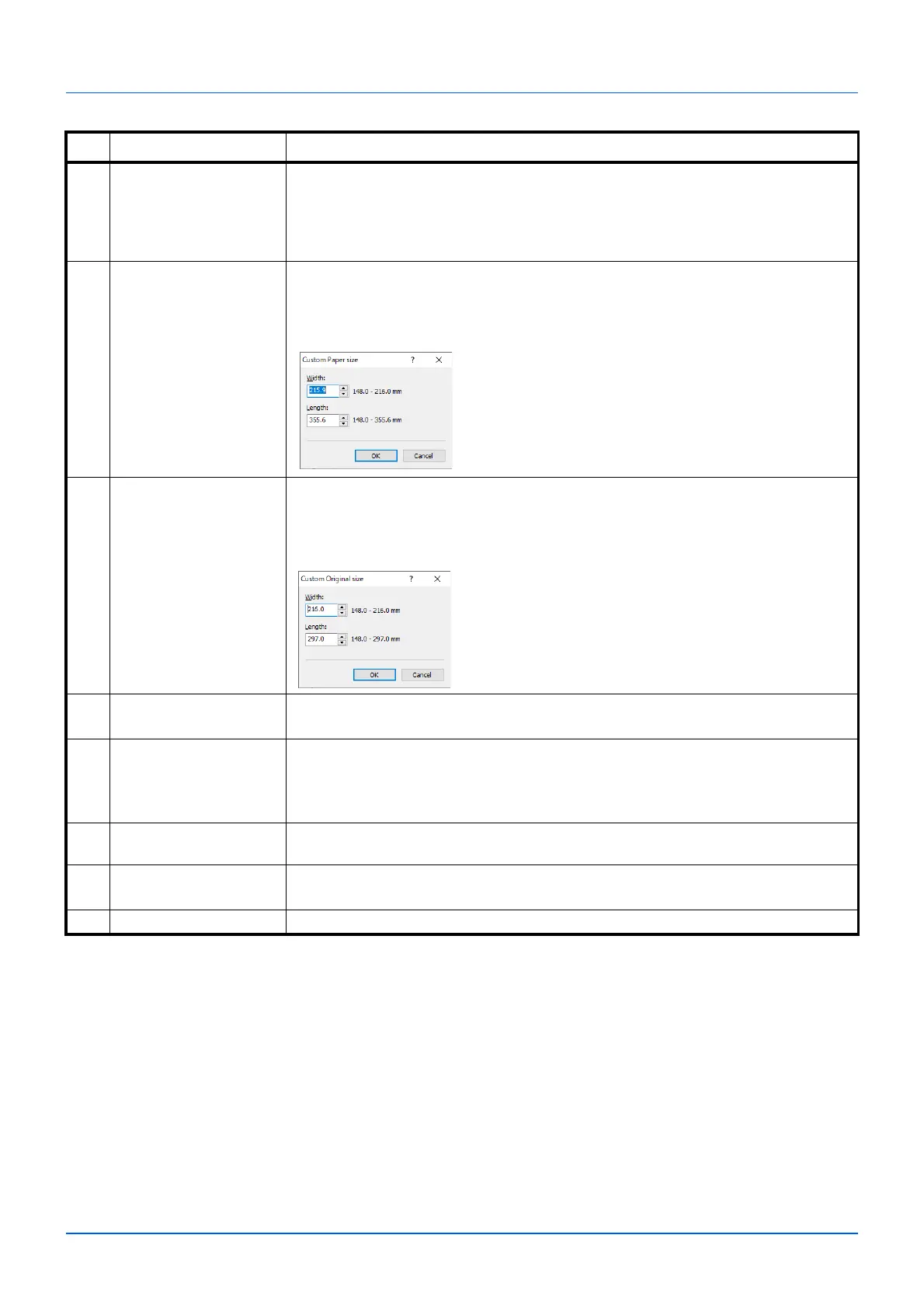 When a Custom size is selected, the Custom Paper size screen appears.