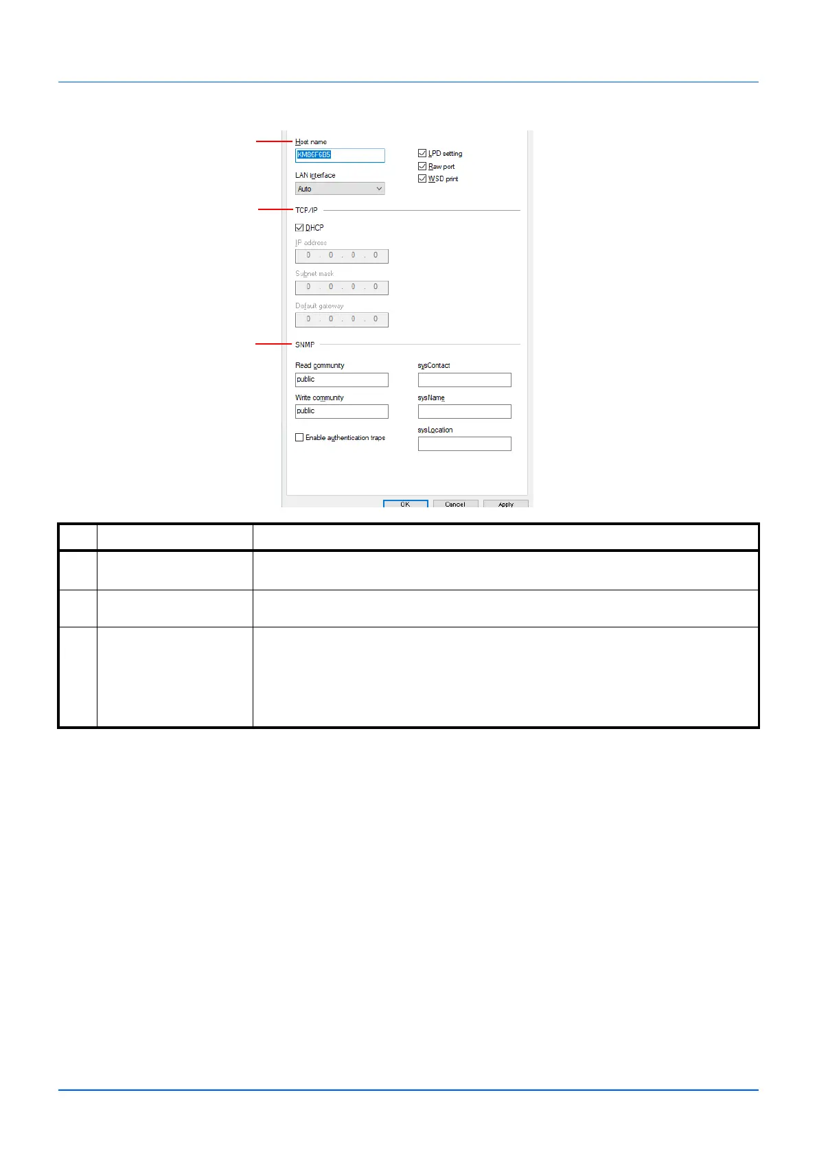 1 Host name Enter the host name of the machine.