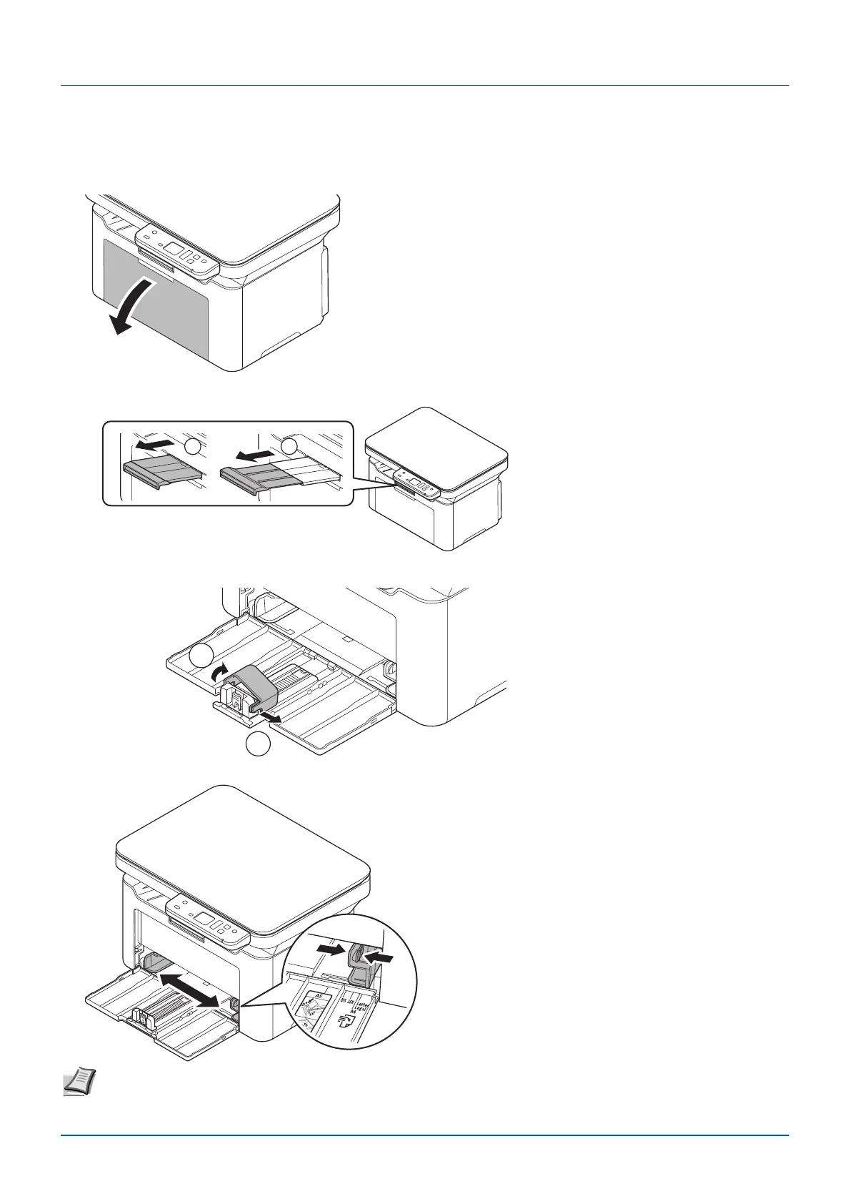 2 Adjust the position of the width guides located on the left and right sides of the cassette.