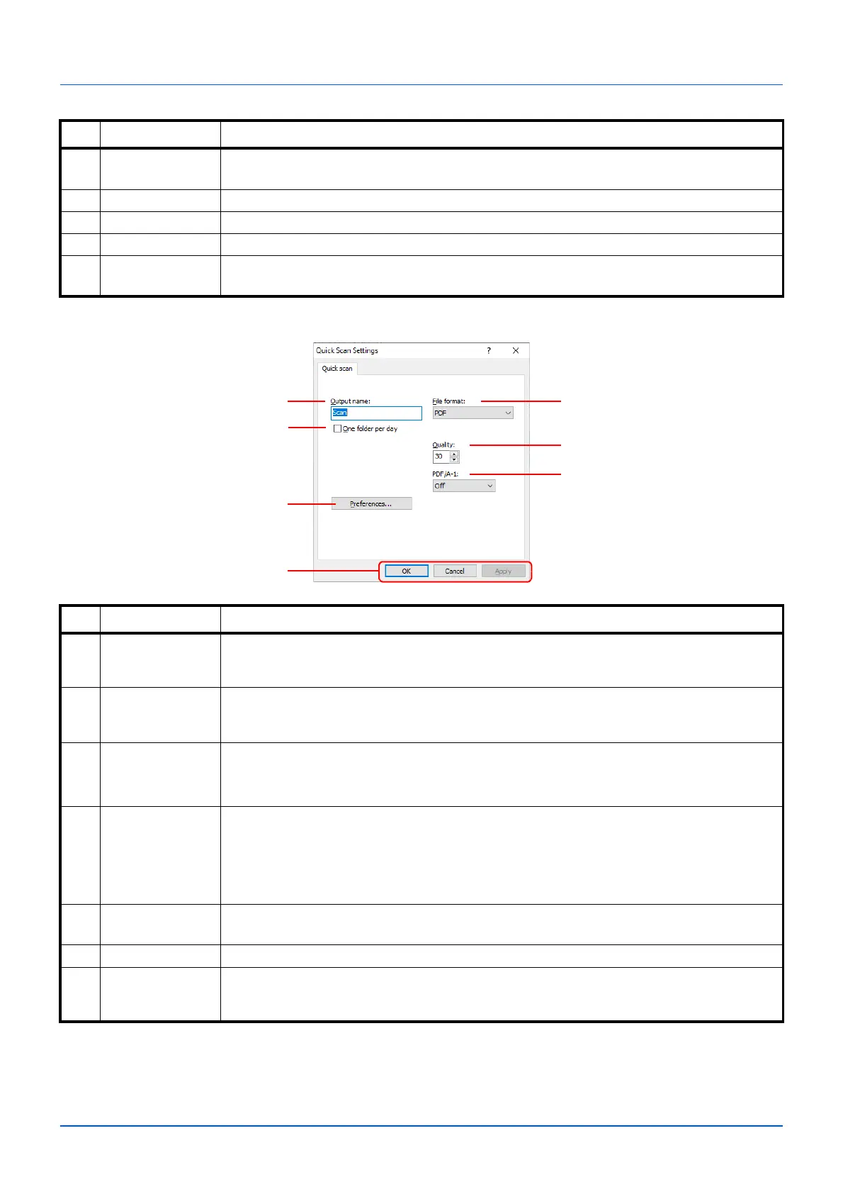 7 OK/Cancel/Apply Clicking OK exits the Quick Scan Settings after applying the modified scan settings.