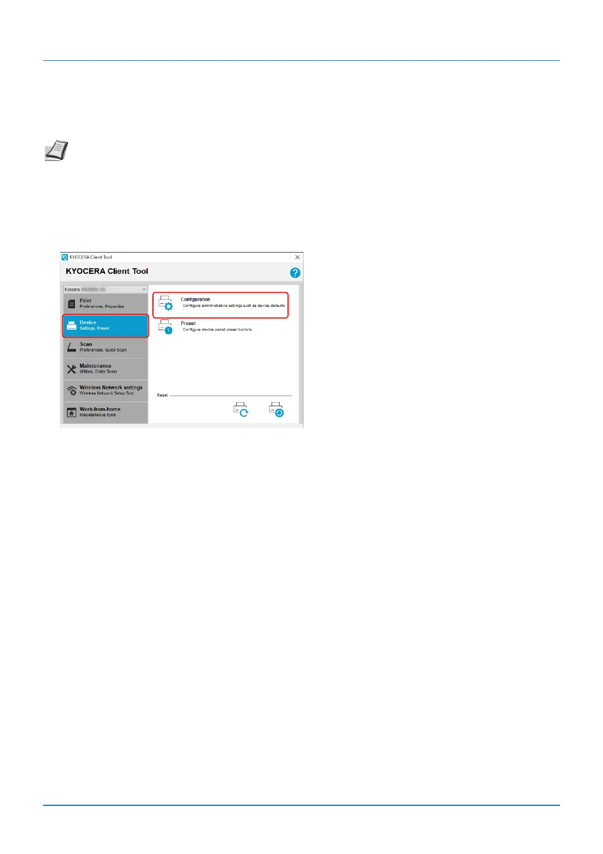 Note For the detailed functions of the Configuration, refer to KYOCERA Client Tool User Guide.