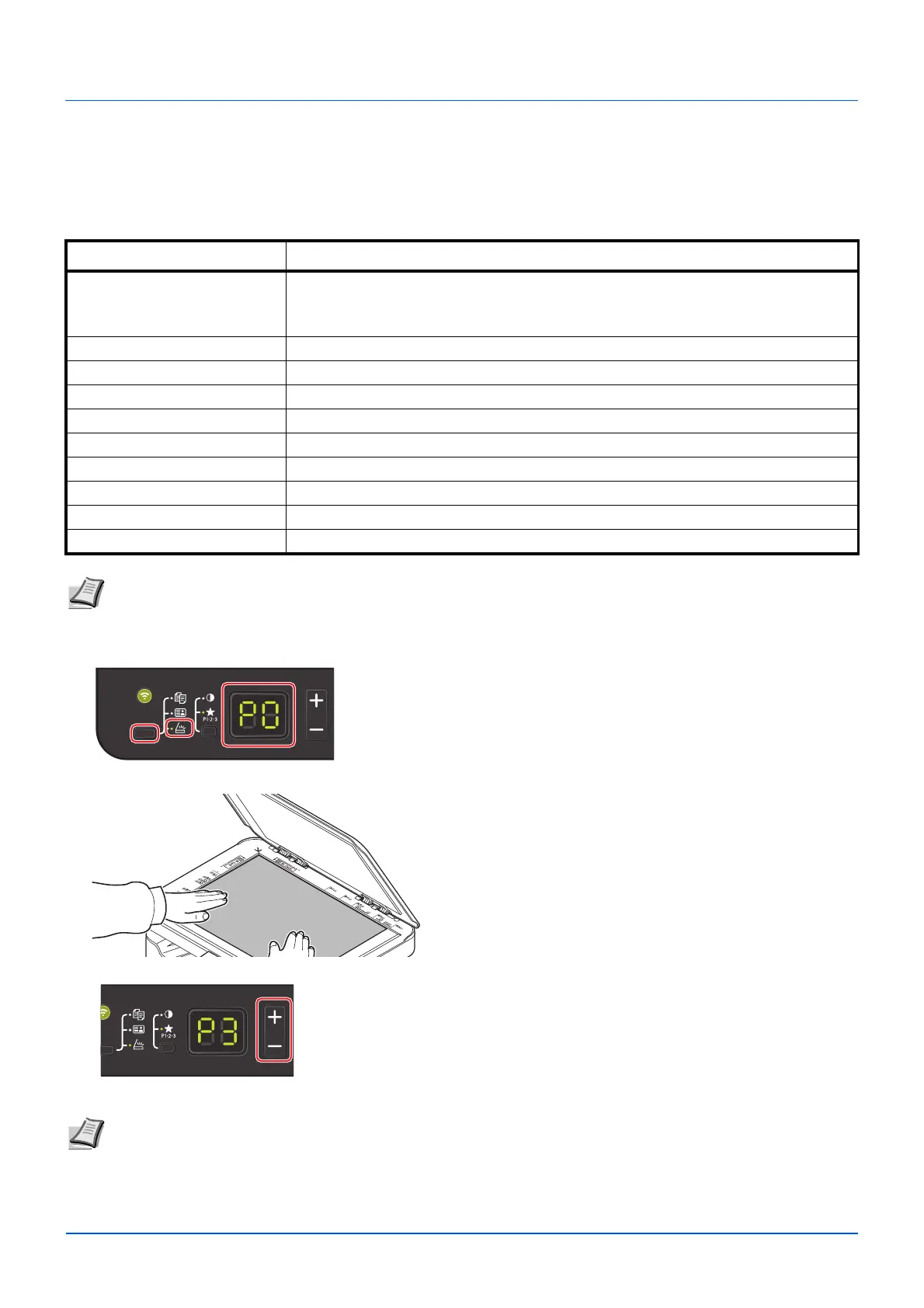 It is easy to scan from the operation panel on the machine. Push Scan performs scanning with the following settings. P0 is