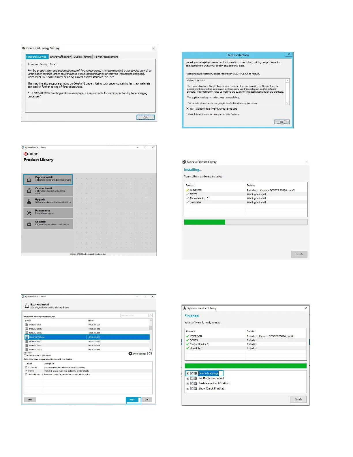 Select Yes to allow the driver to report issues to Kyocera in