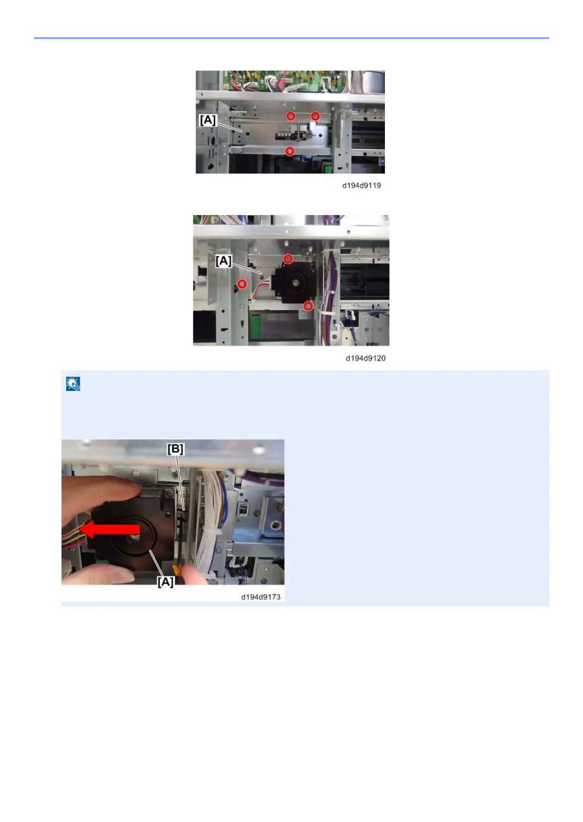 Attach the entrance motor unit [A] (Screw x3: M4x8).