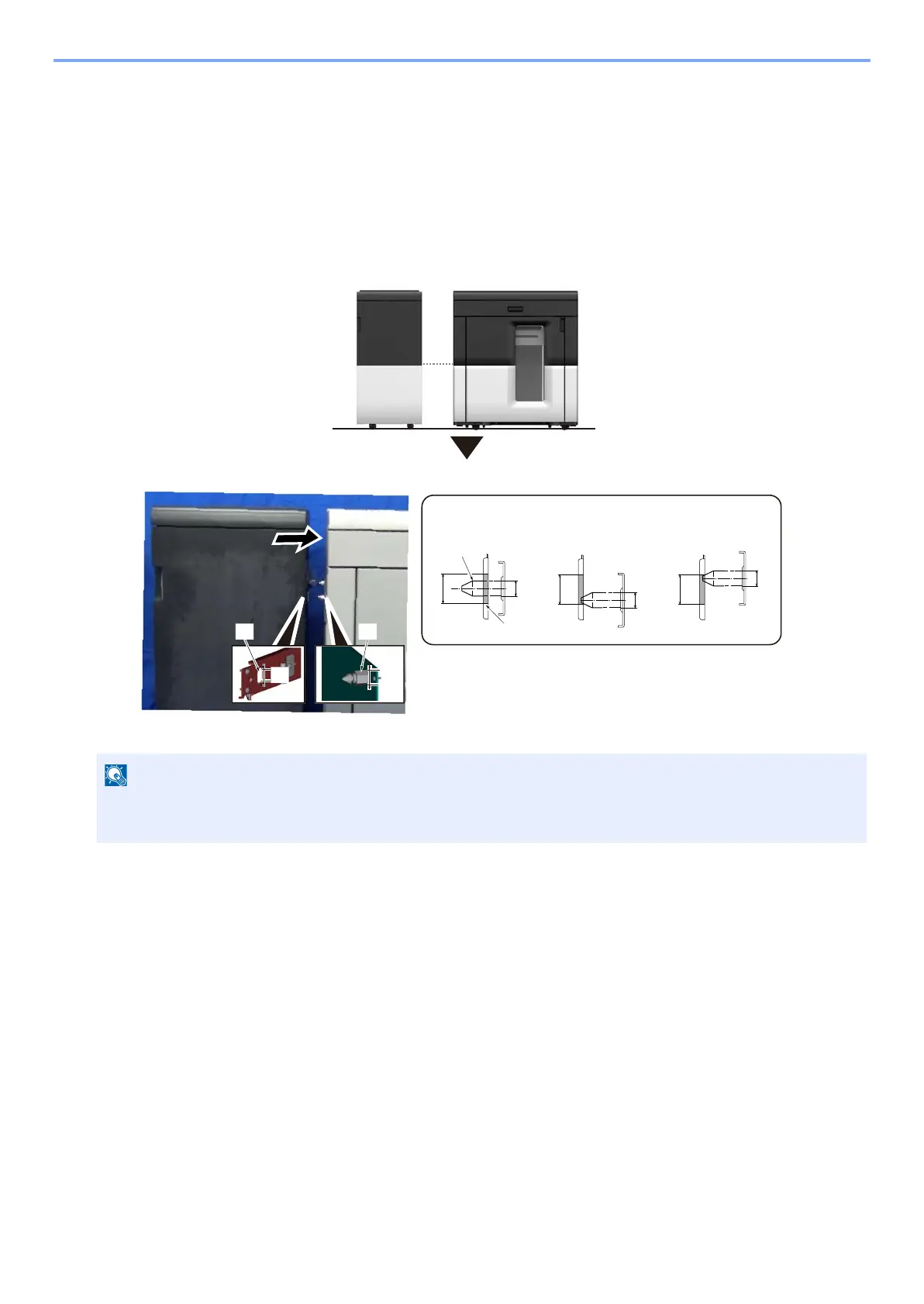 • If the color borders of main unit and Bridge Kit for Stacker to Finisher(AK-9120) are not in same line then