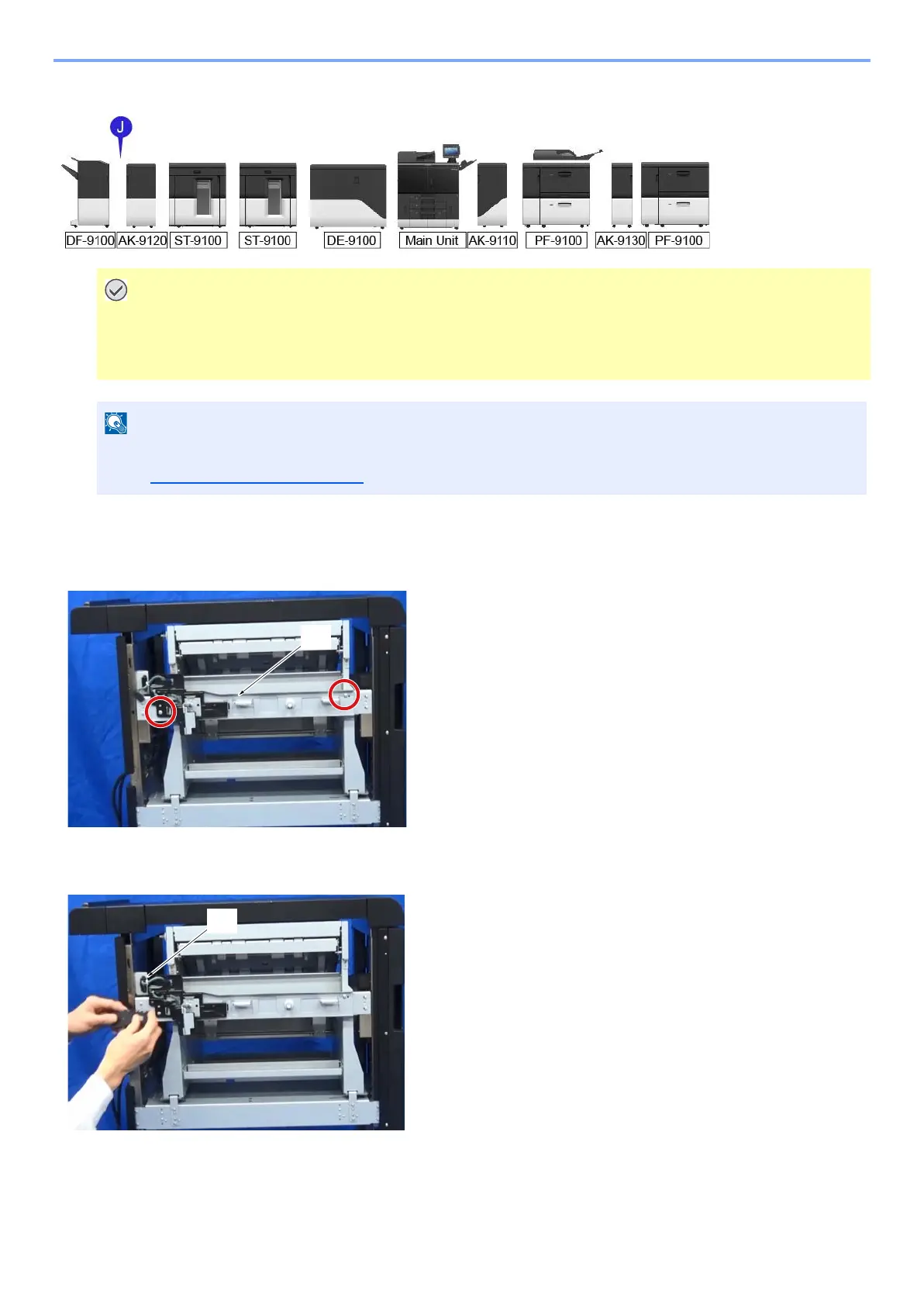 <J> 4000 Sheet finisher (DF-9100) to Stacker-Finisher Bridge kit (AK-9120)