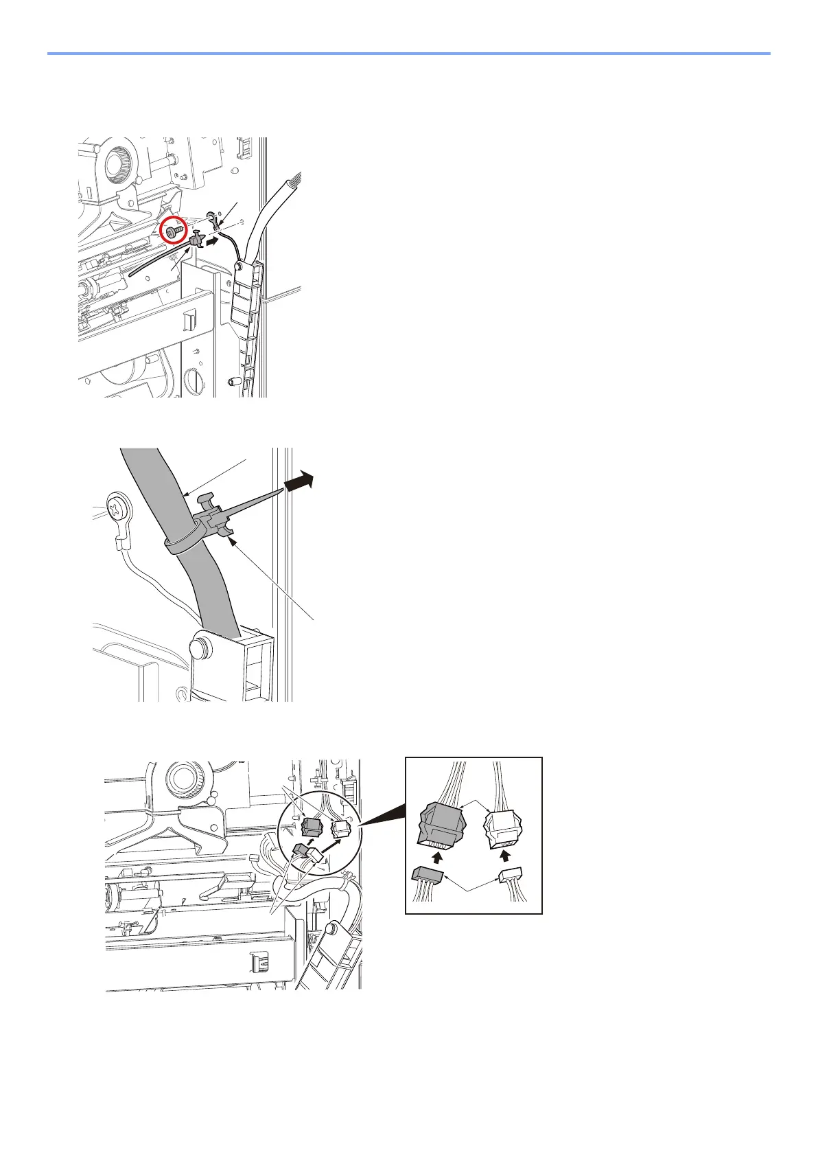 Secure the ground line [A] to the frame (Screw x1: M4x8). Put the band [B] to the