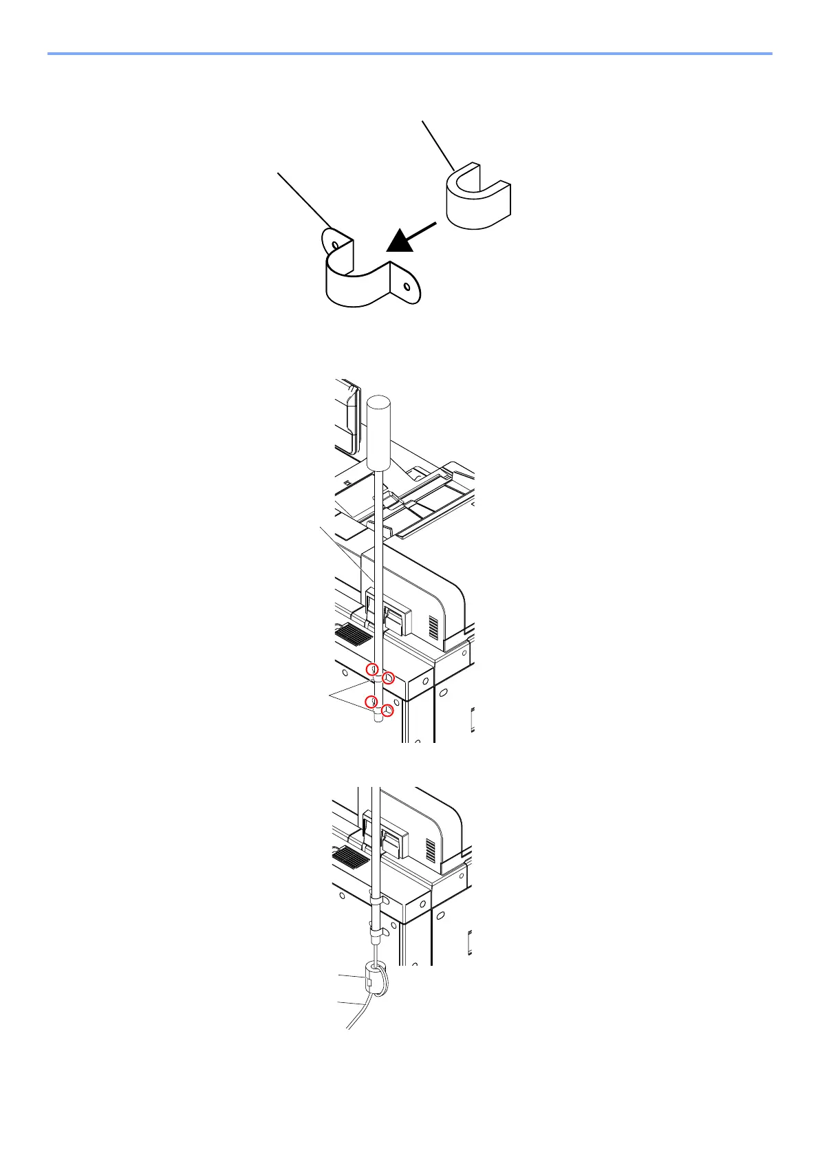 Put two bracket [A] on the rear side of main frame (screws x2 each). Insert the pole