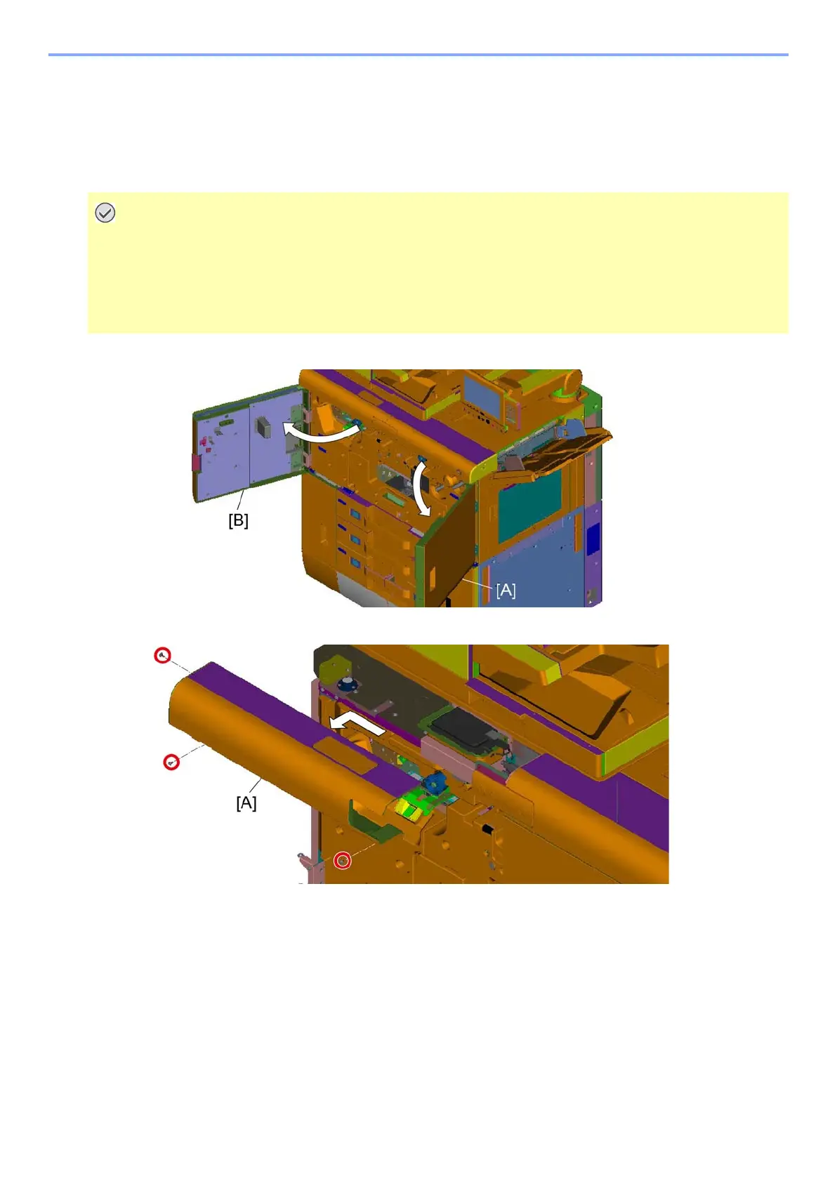 Open the front right upper cover [A] and the front left upper cover [B].