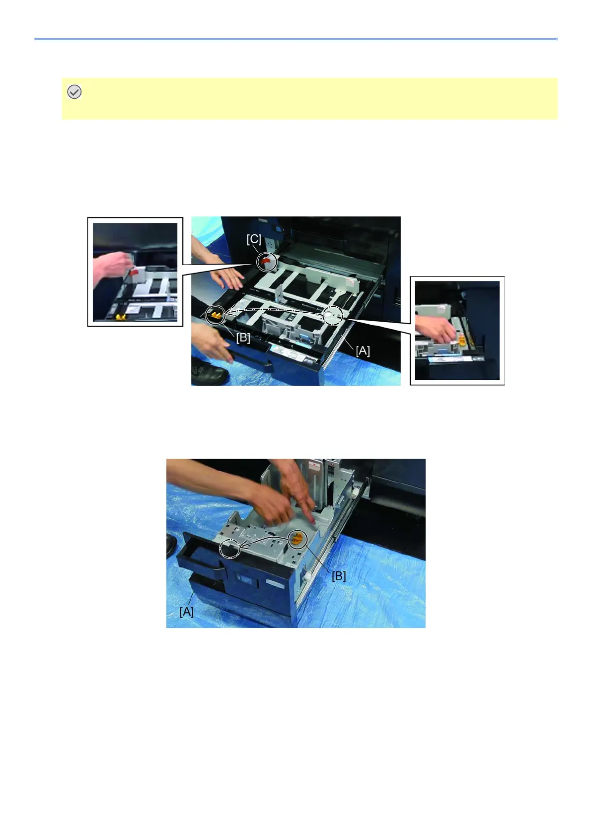 Re-insert cassette 3 [A] and repeat same procedures 13 to 15 for cassette 4 as well.
