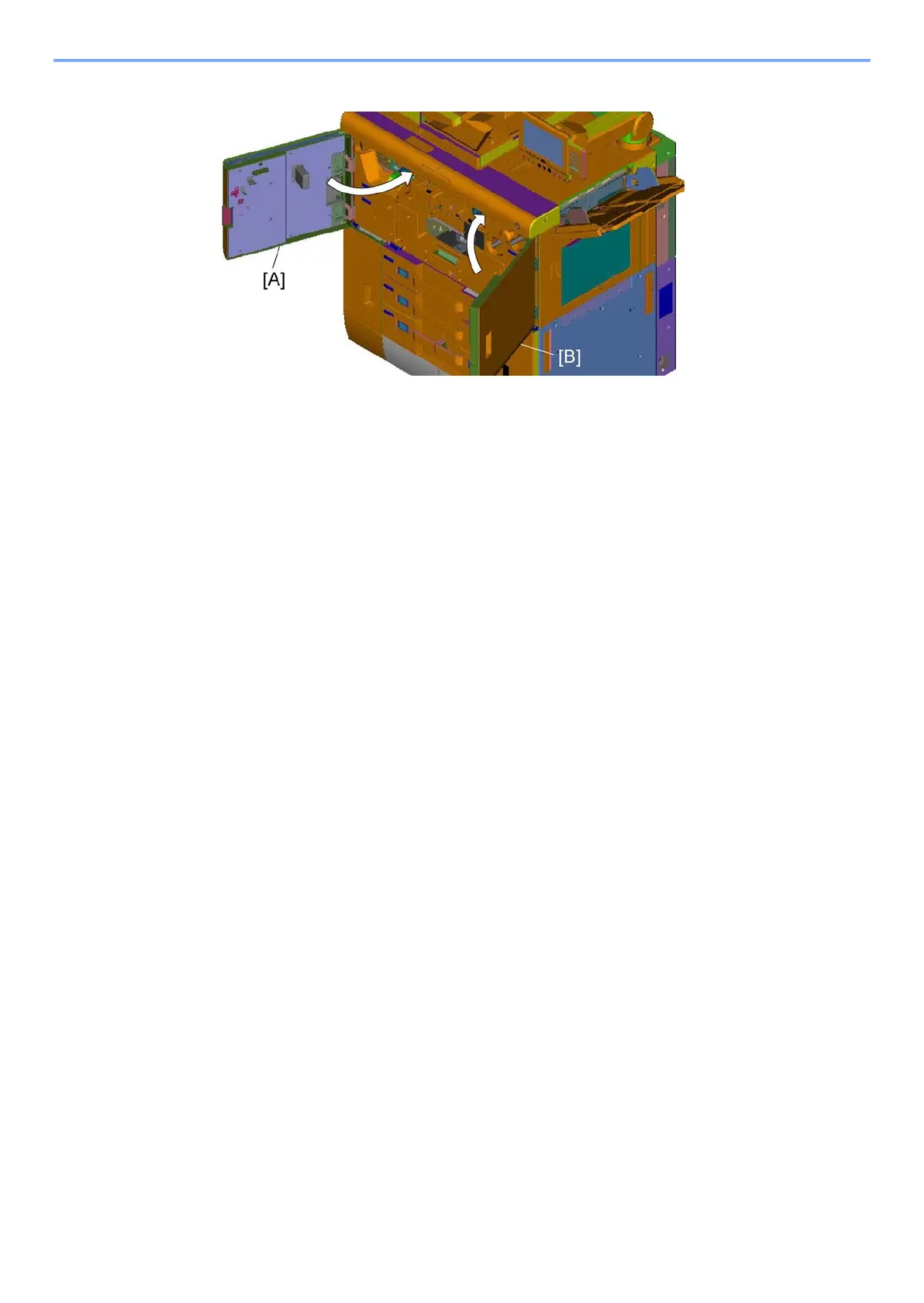 Close the front left upper cover [A] and the front right upper cover [B].