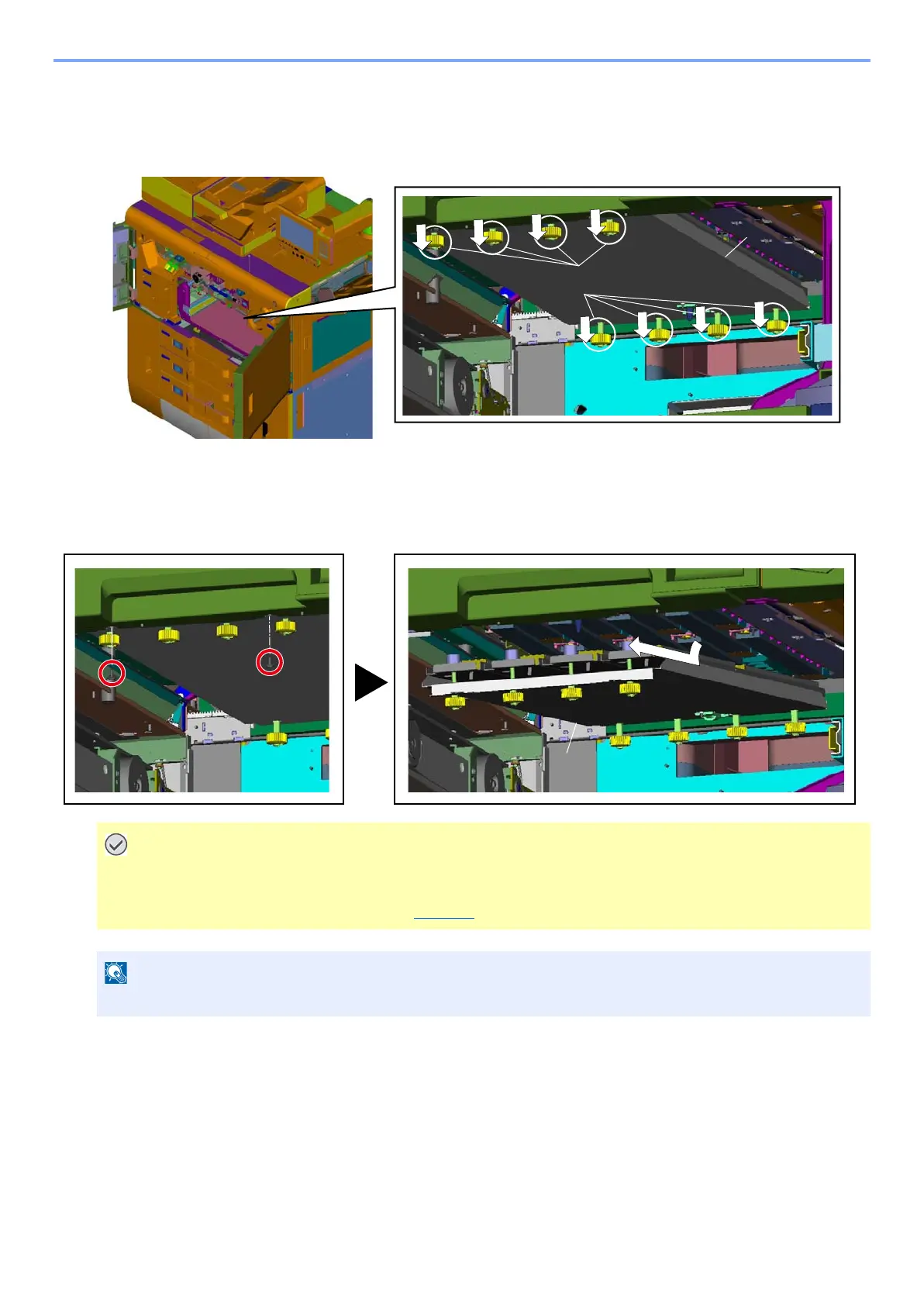 In case of turning the power on without removing the cap unit, the belt of the image conveying unit, caps in the treatment