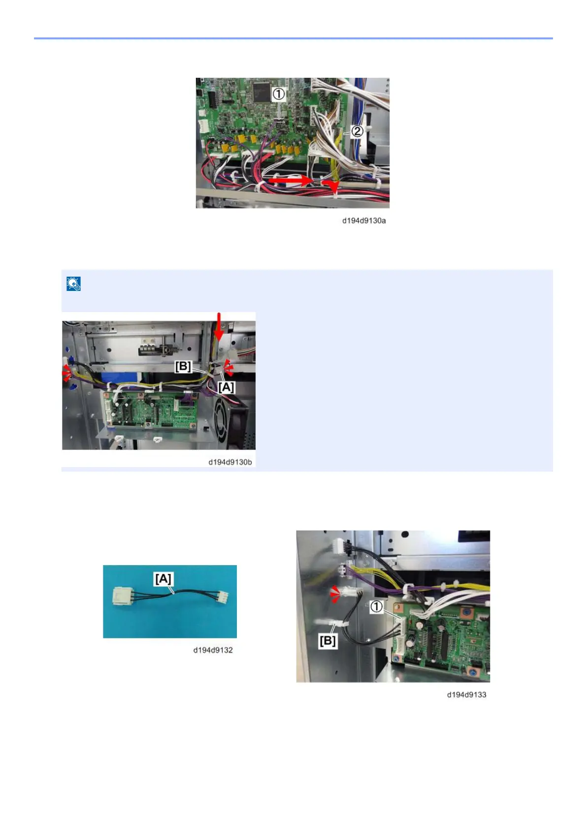 Connect the interlock switch harness [A] to the control board (connector x1). Insert