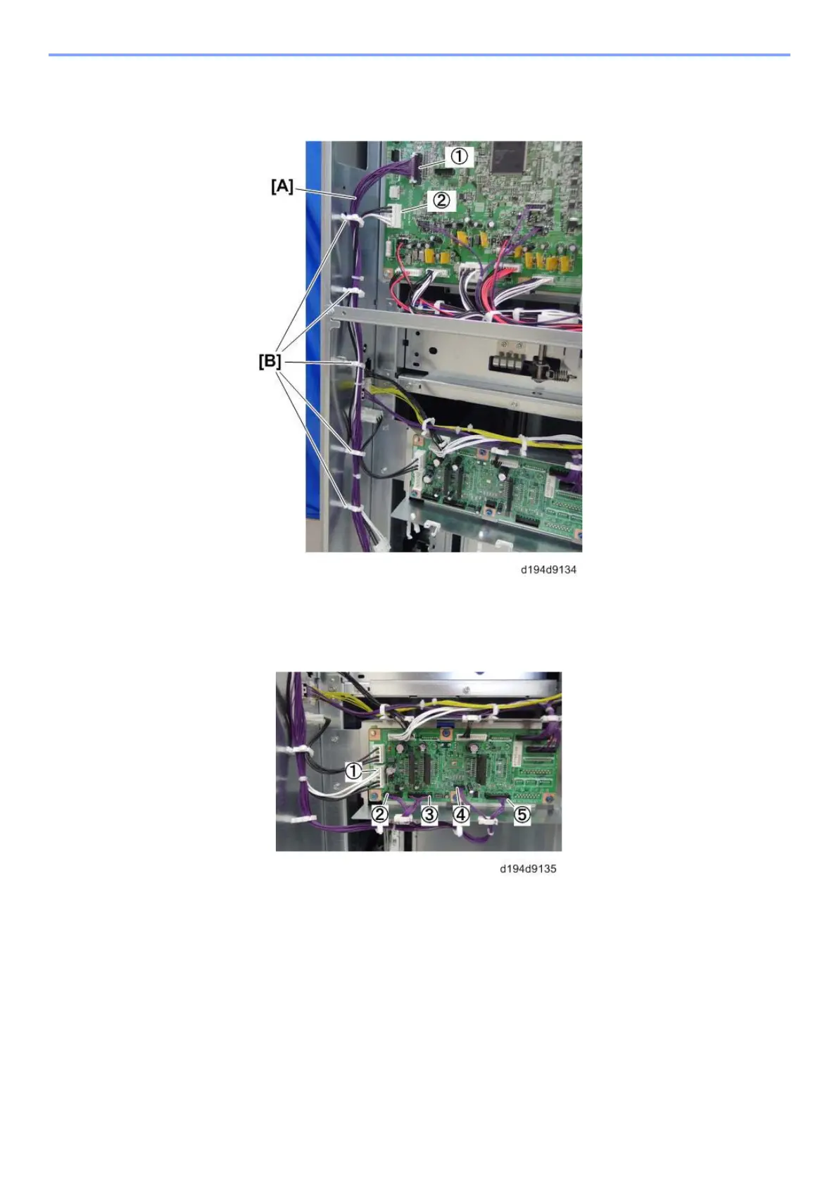 Connect the interface harness [A] to the main board of the paper feeder (connector