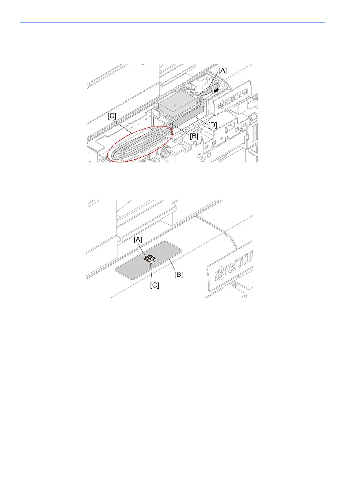 Path the wire [B] through back of the sheet [D] and bundle the extra wire [C] in the