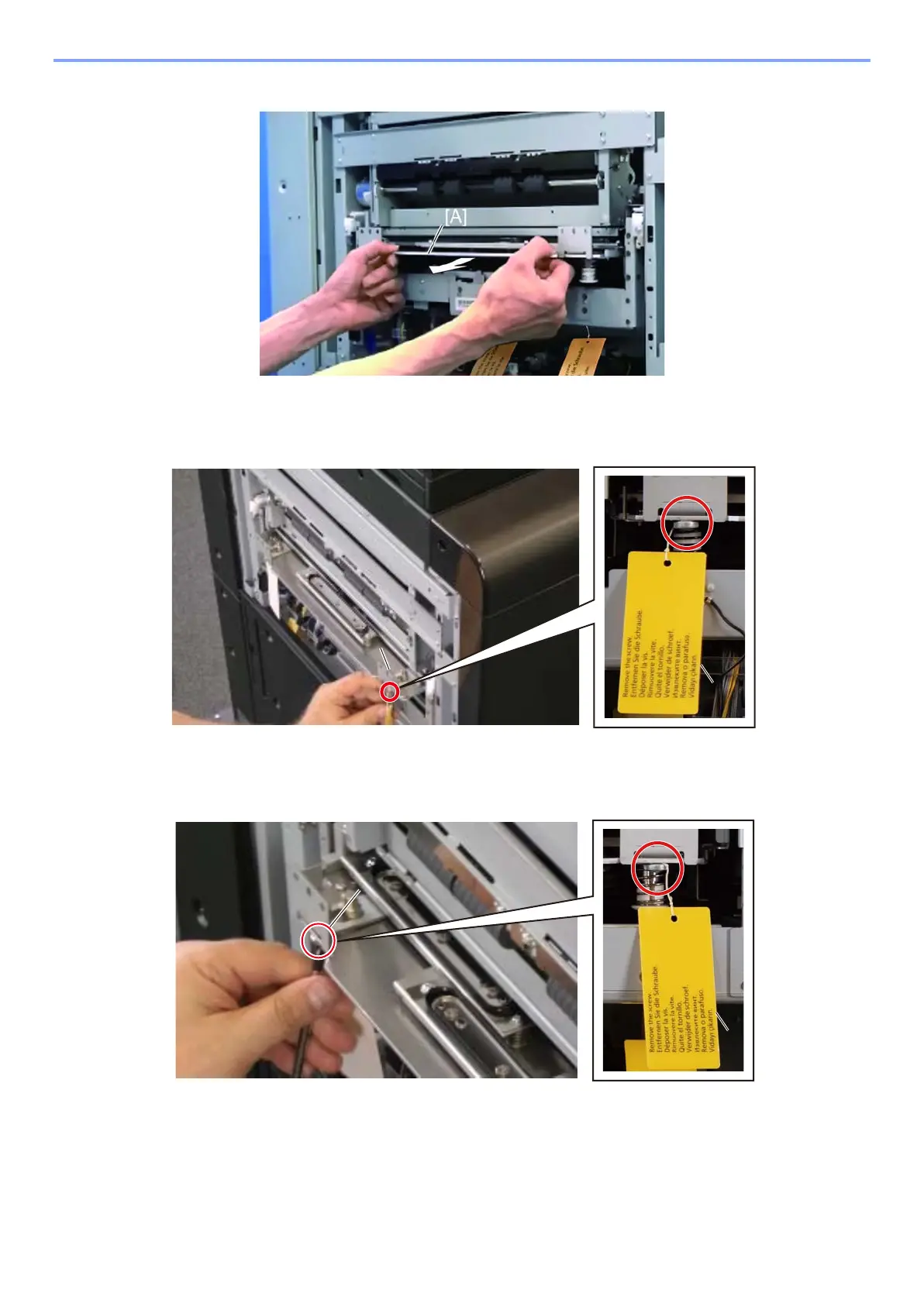 The main unit setup procedure > Remove the transportation spacers