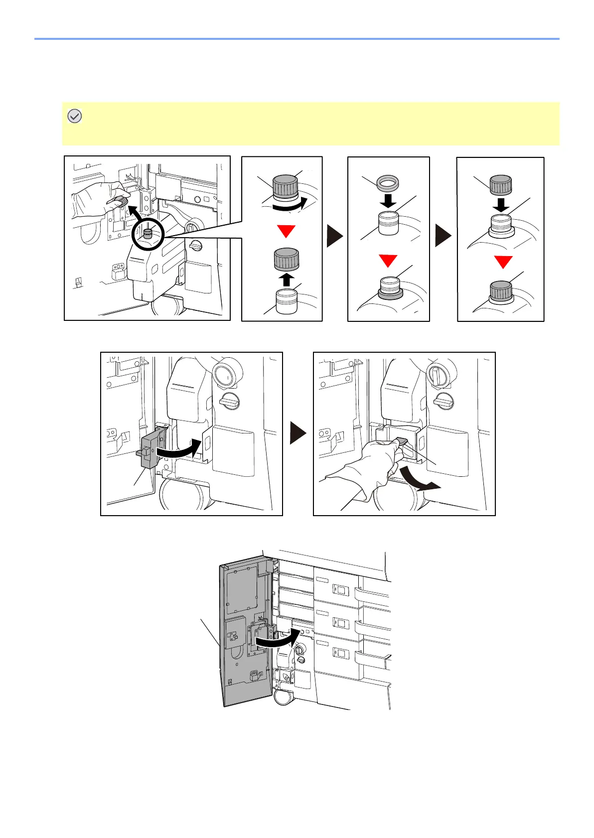 Close the cleaning liquid tank cover [A] and lock by rotating the lock lever [B].