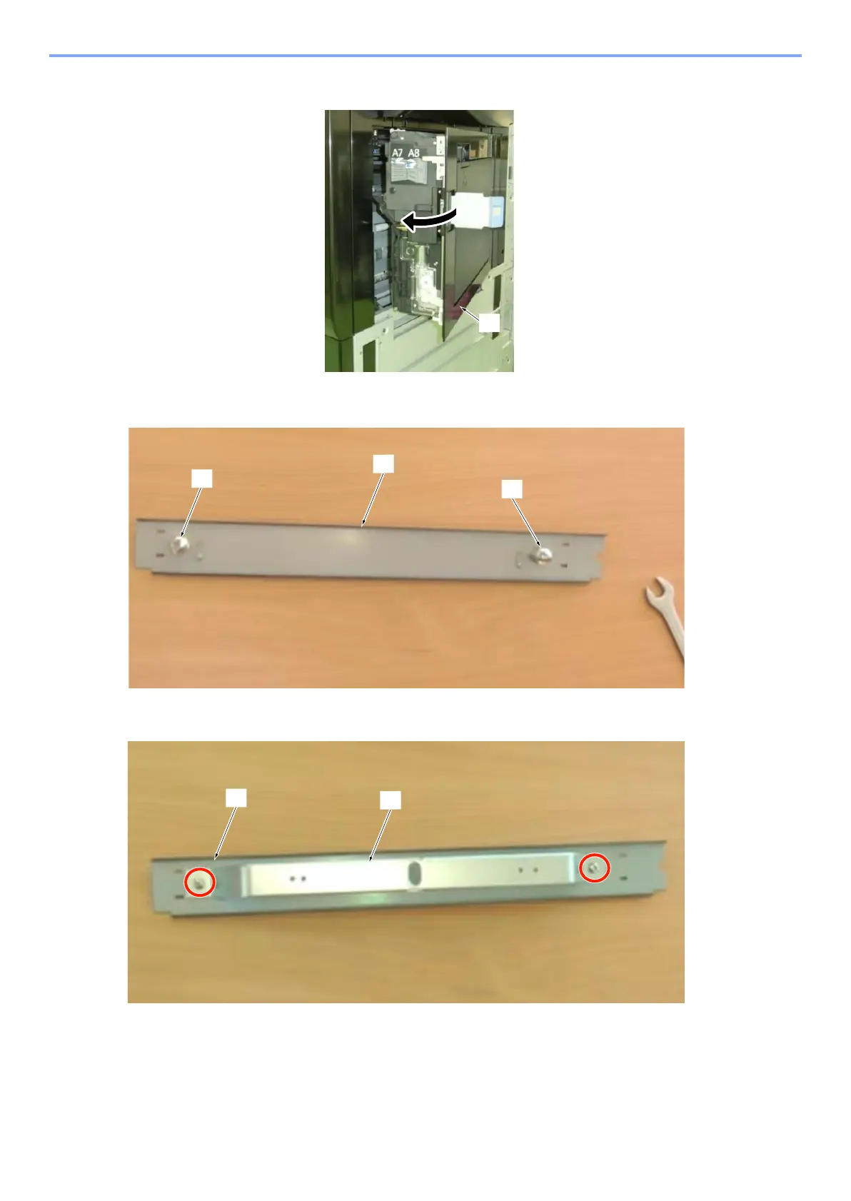 Attach 2 positioning pins [A] to the stay [B] bundled in AK-9110.
