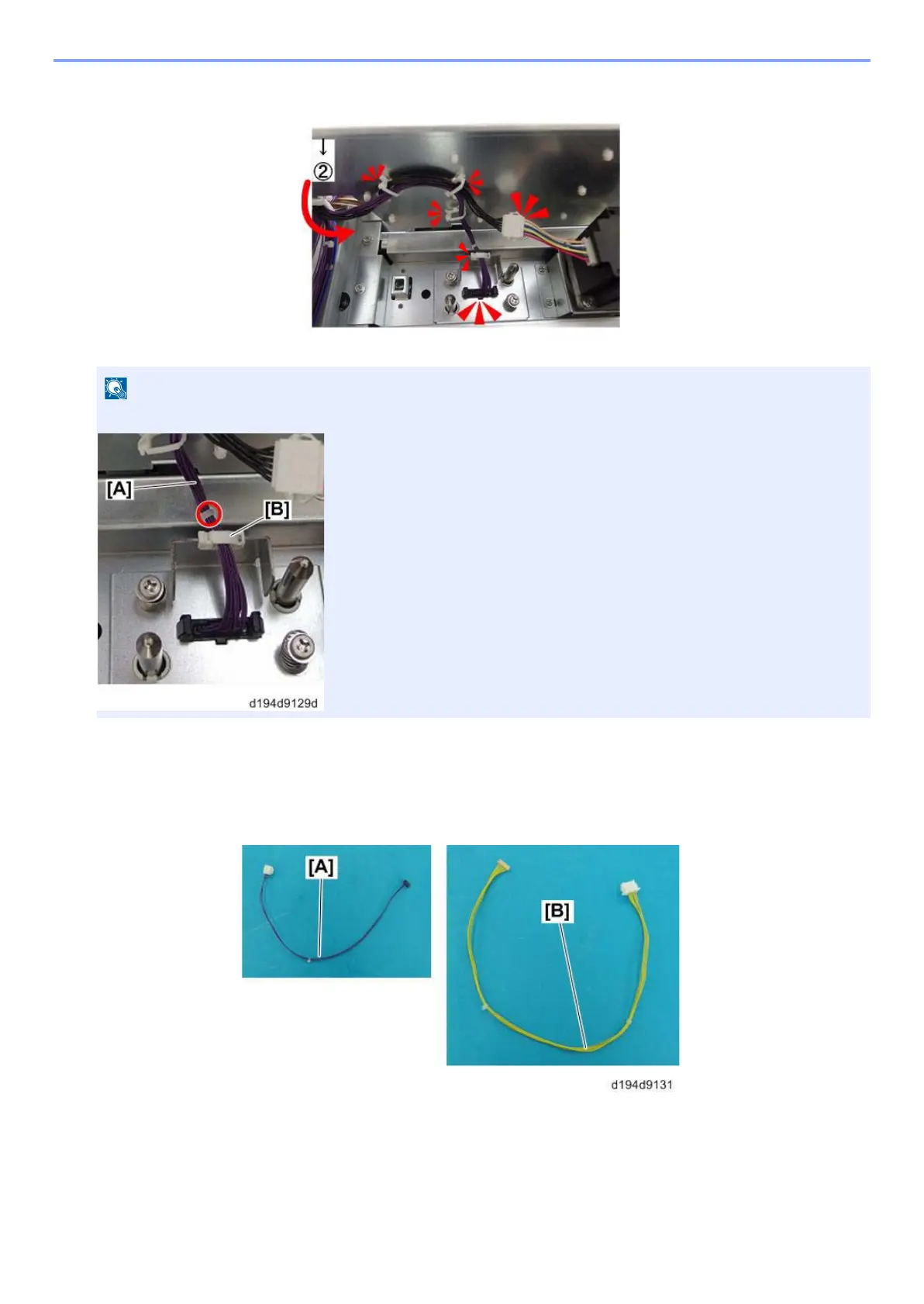 board of the paper feeder (connector x2). Route the cooling fan harness and