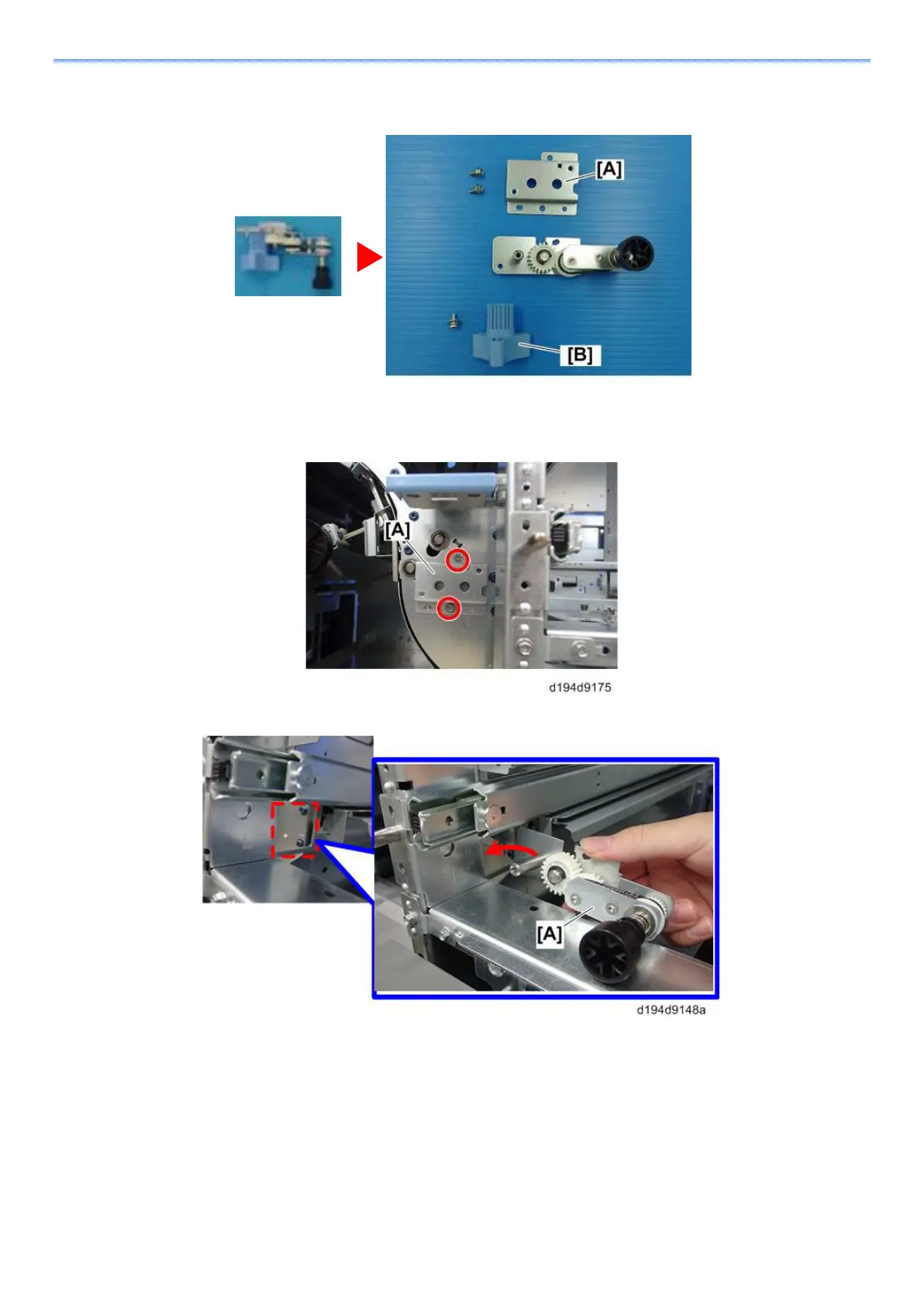 Remove the bracket [A] and knob [B] from the jam removal lever provided with this