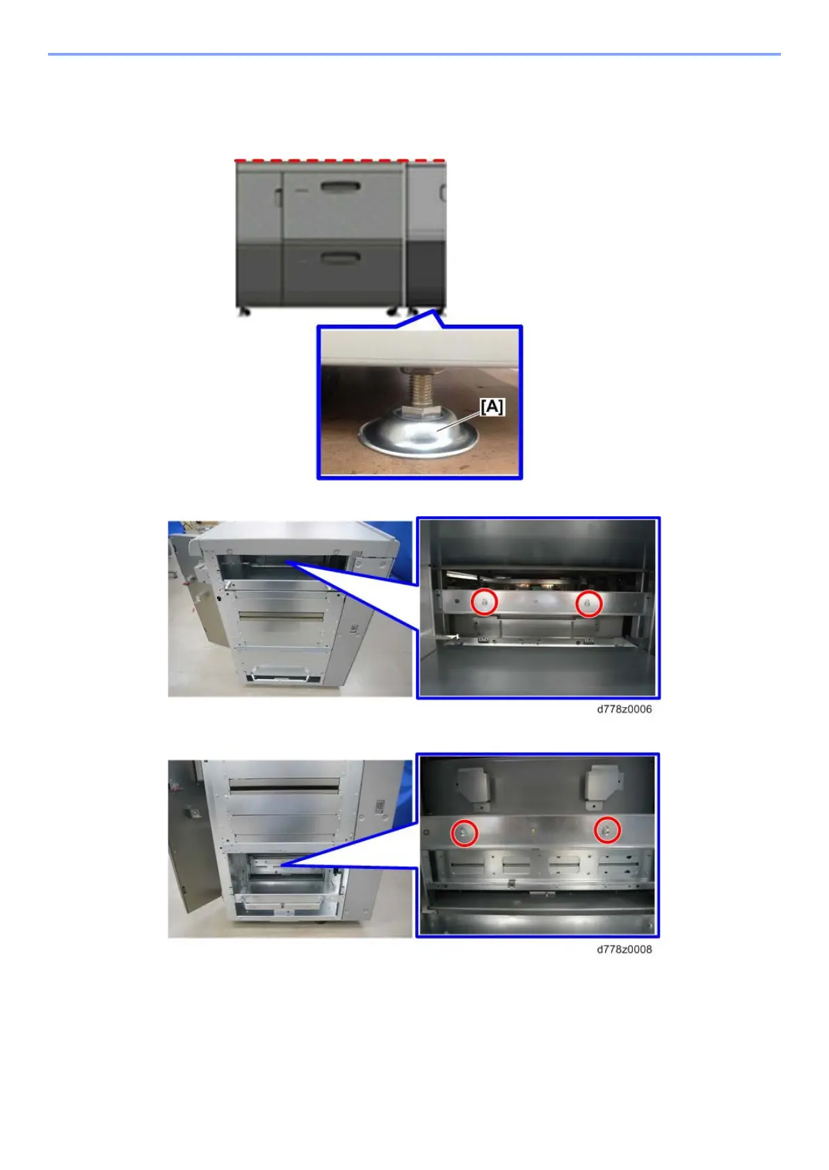 Attach the leveling shoes [A] and then adjust the height so that the tops of the units