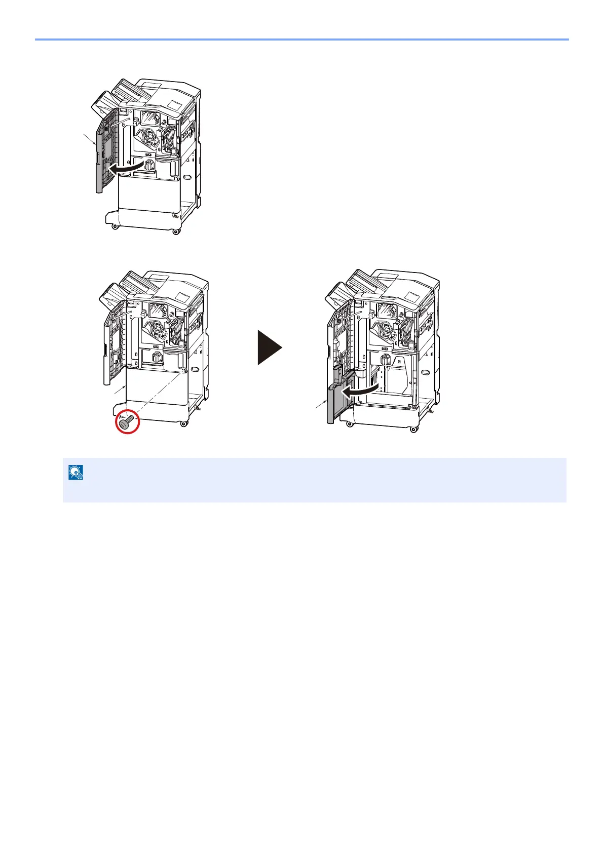 The front lower cover [A] is not secured with screw in case that BF-9110 has installed.