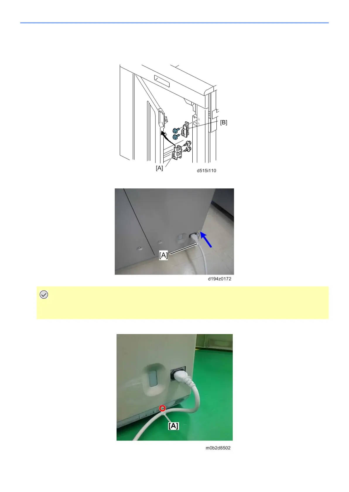 Secure the power cord with the clamp [A]. (screw x1, harness clamp x1)