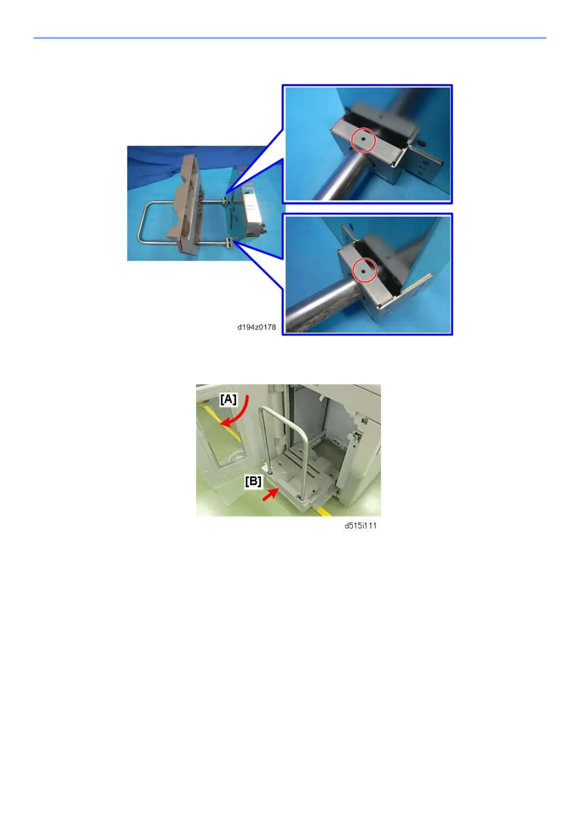 Raise the paper tray and then tighten the screws on the handle bases (screw x 1