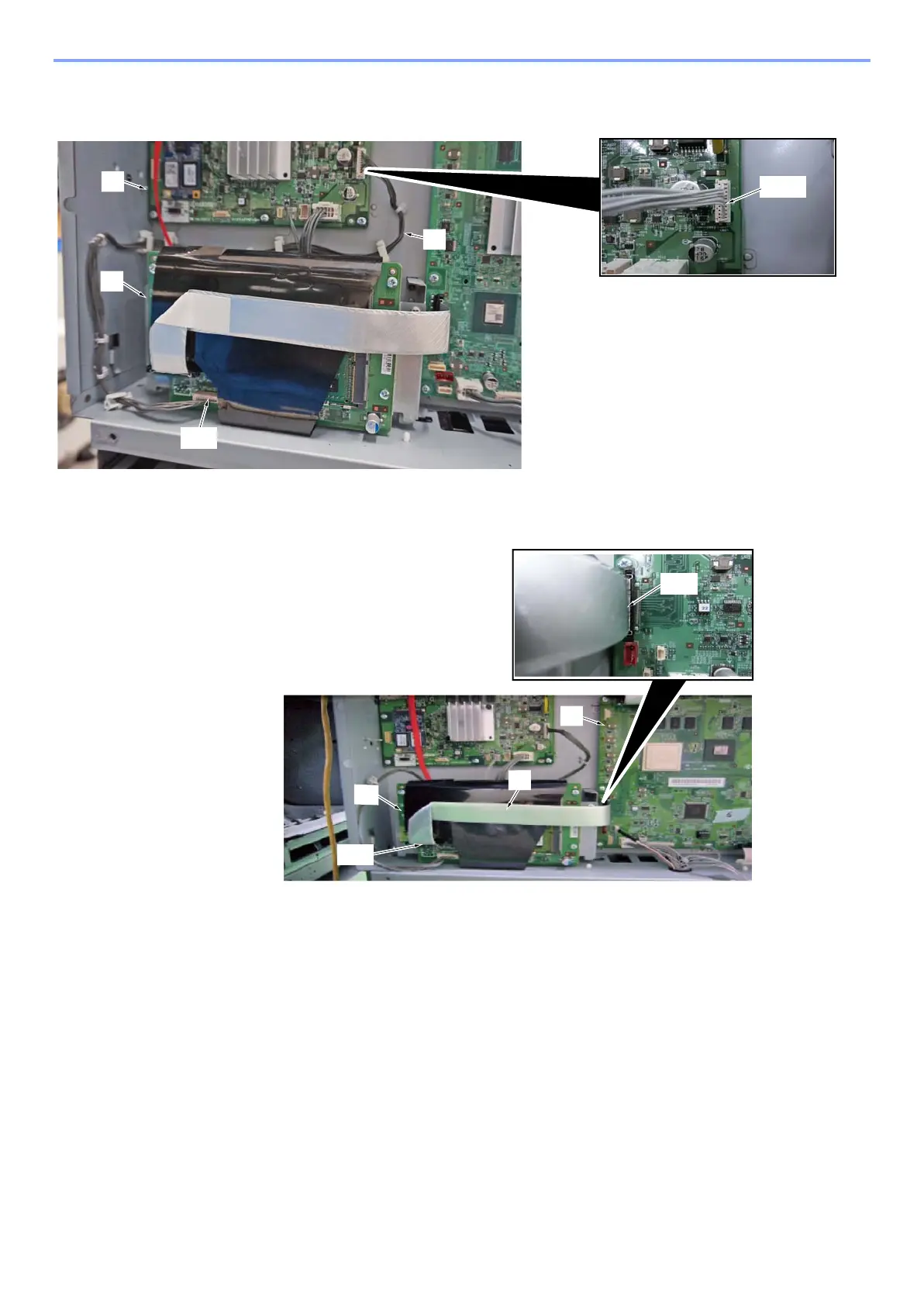 Hook the FCC cable [A] up to the connectors YC6 on Video PWB [B] and YC4 on Fiery
