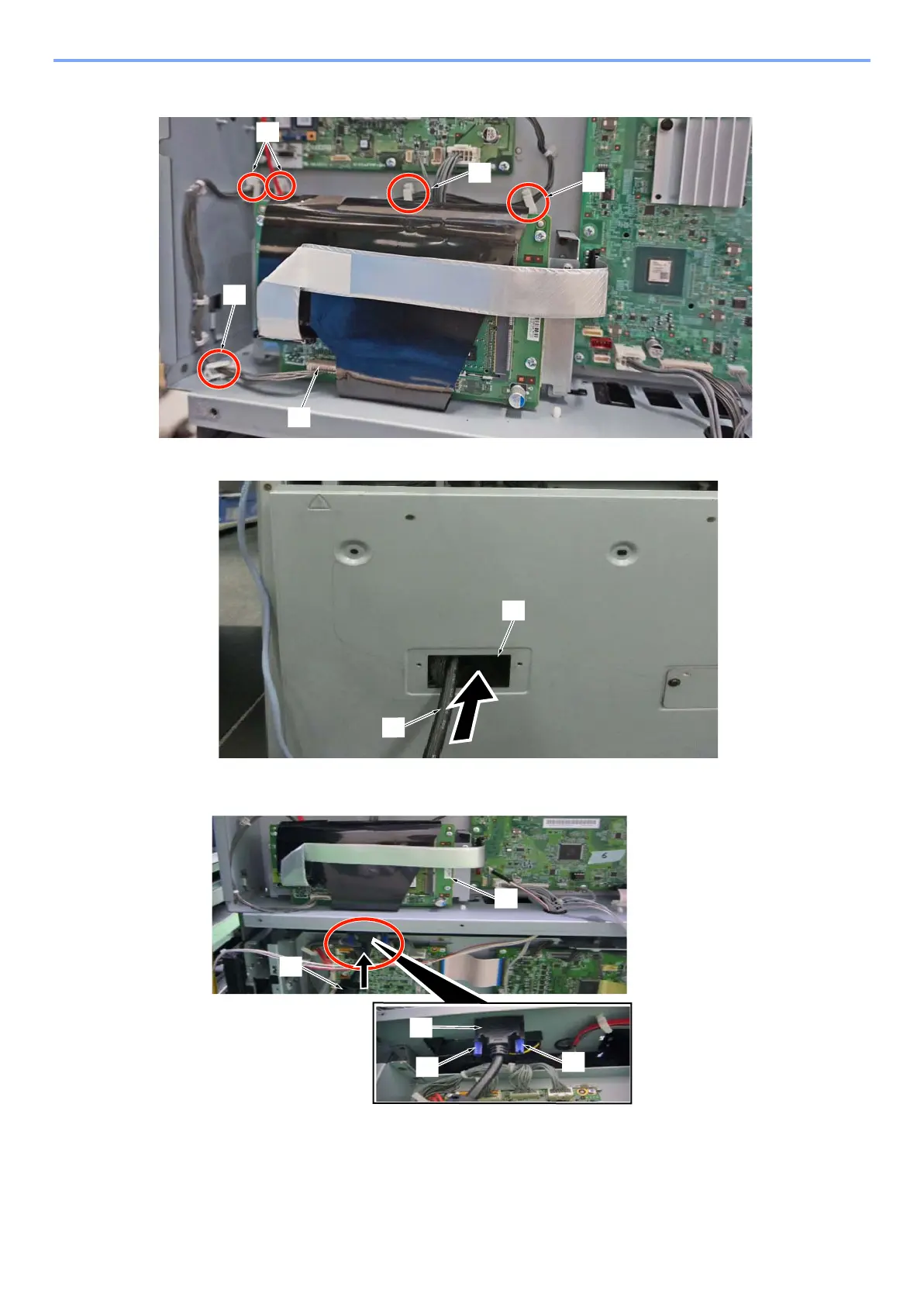 Pass the DVI cable [A] through a rectangle hole [B] in the Rear Lower cover.