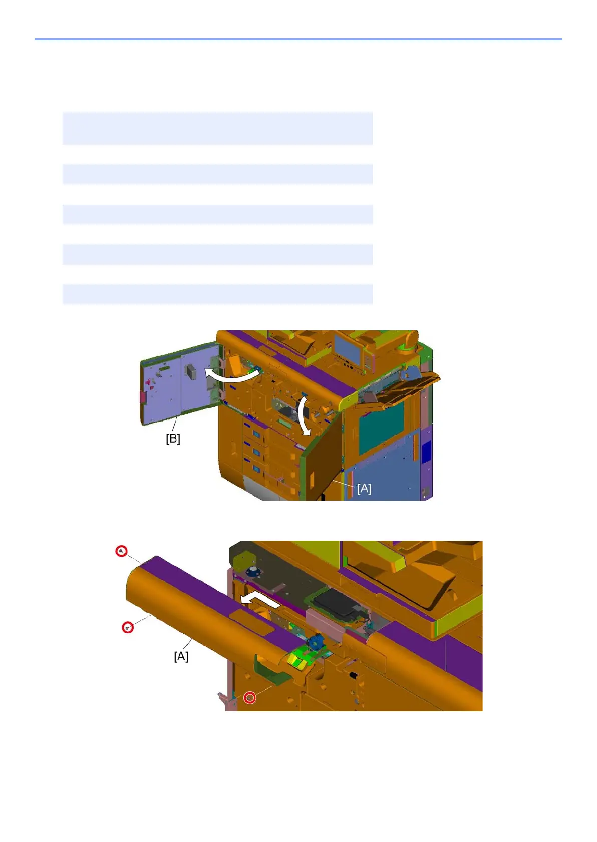 Open the front right upper cover [A] and the front left upper cover [B].
