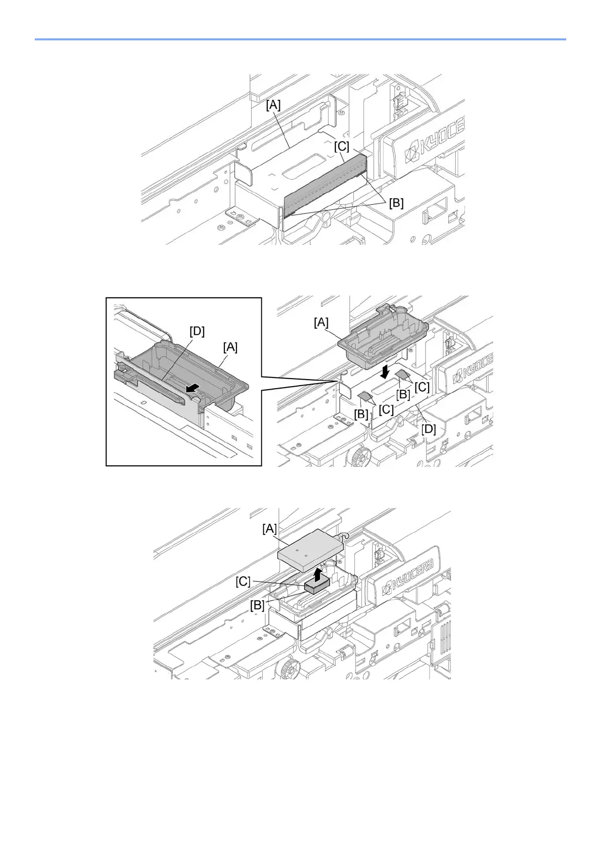 Put the card reader holder [A] onto the vertical face of the card reader bracket [D].
