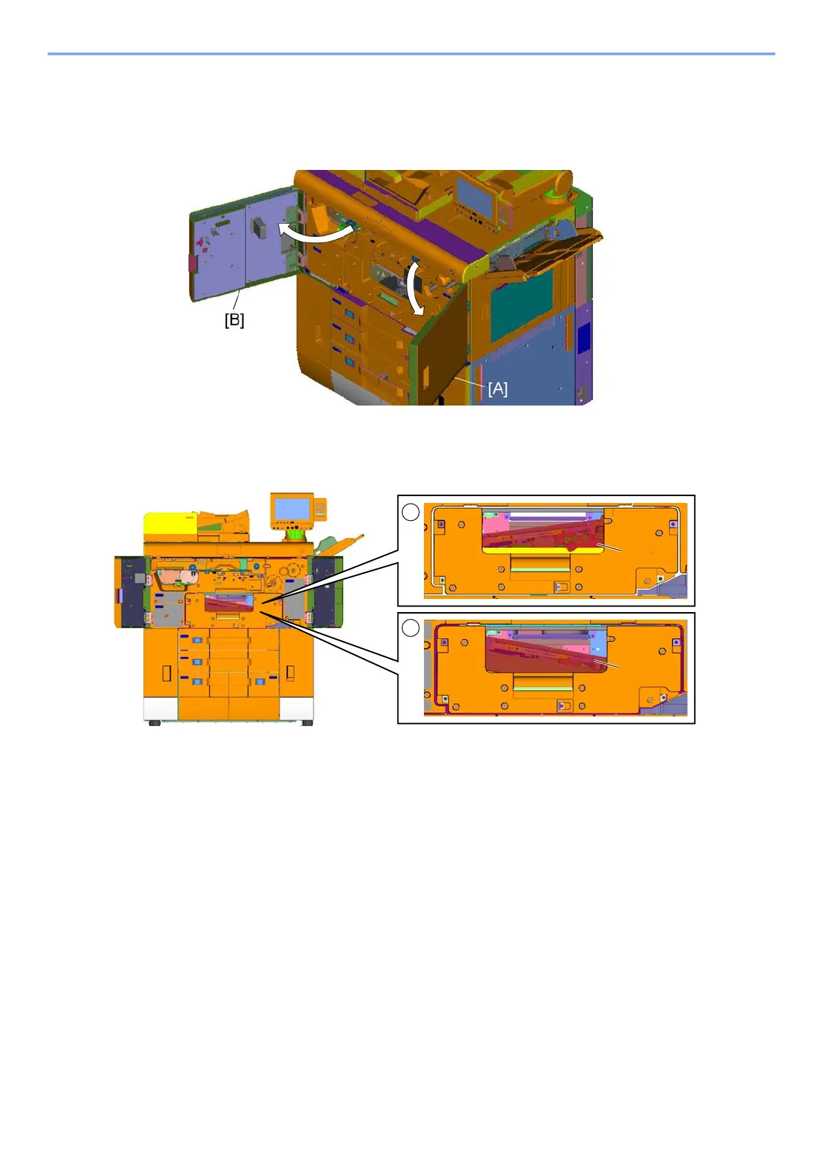 (2) Right side of the image conveying unit down because the left fix plate is not removed.