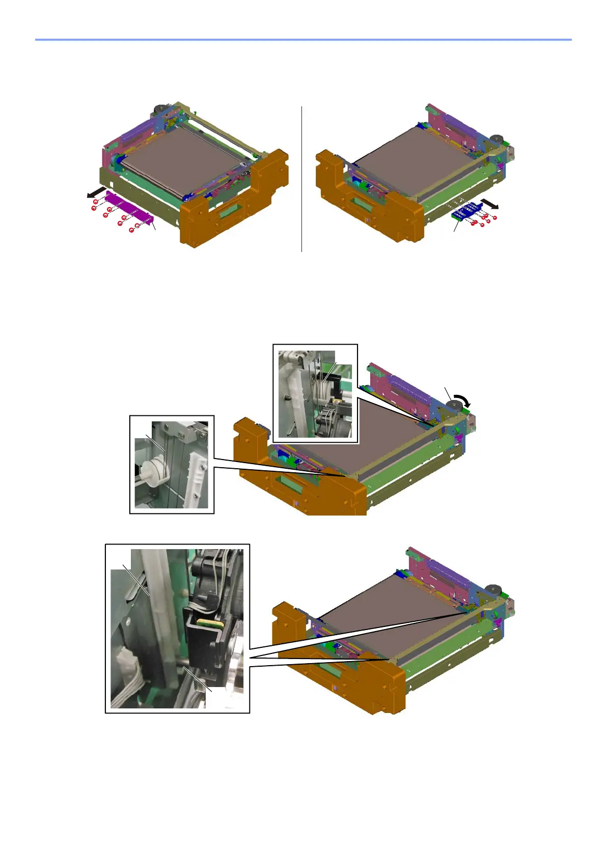 Wind up the wire until the image conveying belt get around removal position (fix bracket position).