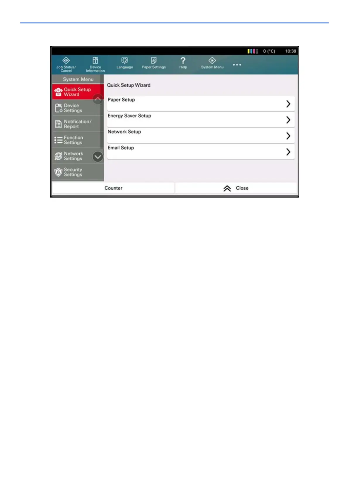 Start the setup wizard for the initial setting such as Network, E-mail and so on.